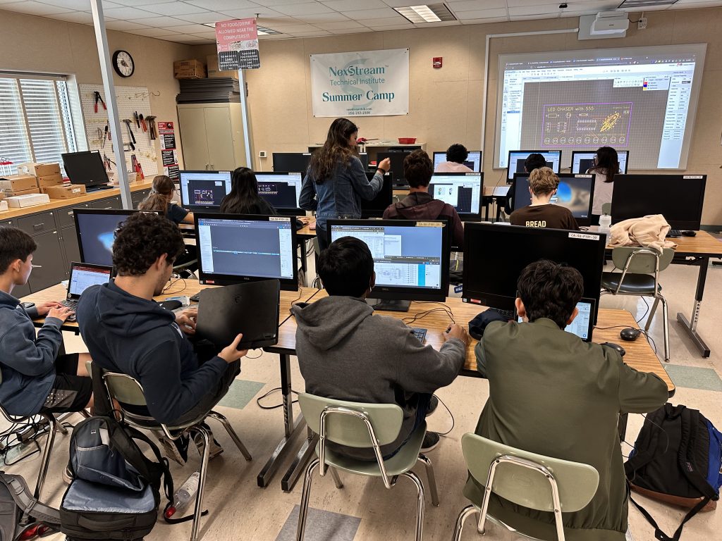 We got in to San Diego late last night.. Went by the hotel where Angelina was staying to pay for her room. Angelina is an 18 year old HackClubber who will be teaching the Printed Circuit Board class and Canyon Crest Academy over the next 2 days.   It was great meeting her for the first time. She’s an amazing hardware and software designer,  and  also a pilot . Next year she’ll be a freshman at CalTech..I know he’s going to love it and to well.