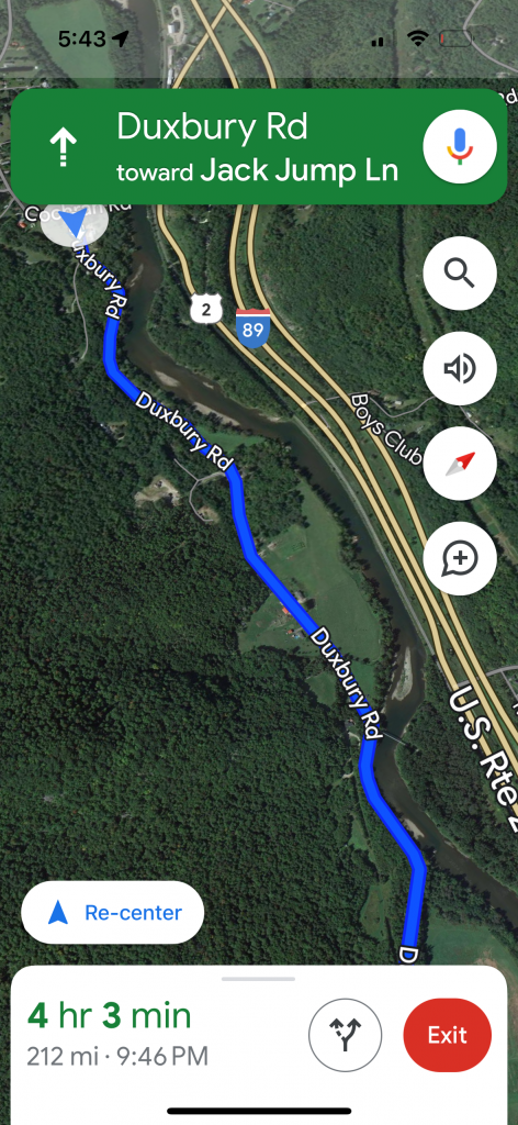 Then things slowly got back to normal-ish.. I say normal-ish because all of a sudden all the roads got packed.. in a few minutes it was back to back traffic on the interstate, and on route 2.. a few minutes later, a ton of traffic started going down Duxbury rd. I checked google maps and sure enough.. the mapping app was counting people down the 10 mile dirt road.. just after mud season.. Diane even saw a semi truck go down there !
