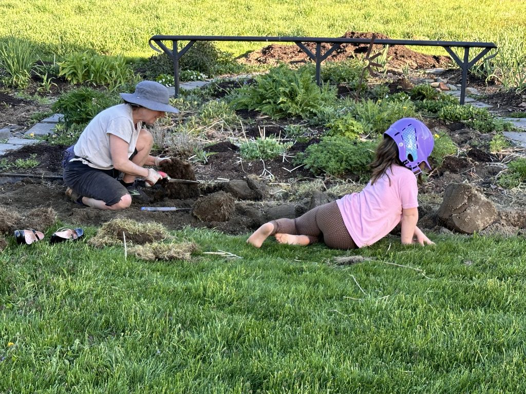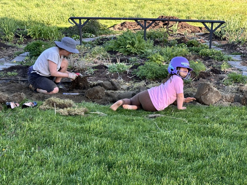 DIane is hard at work prepping for this years garden. SHe’s expanded the back garden by another three (or is it four) foot strip .. Its so much work for her to weed, till, rearrange.. plant ever year.. the results are always so beautiful. !!!