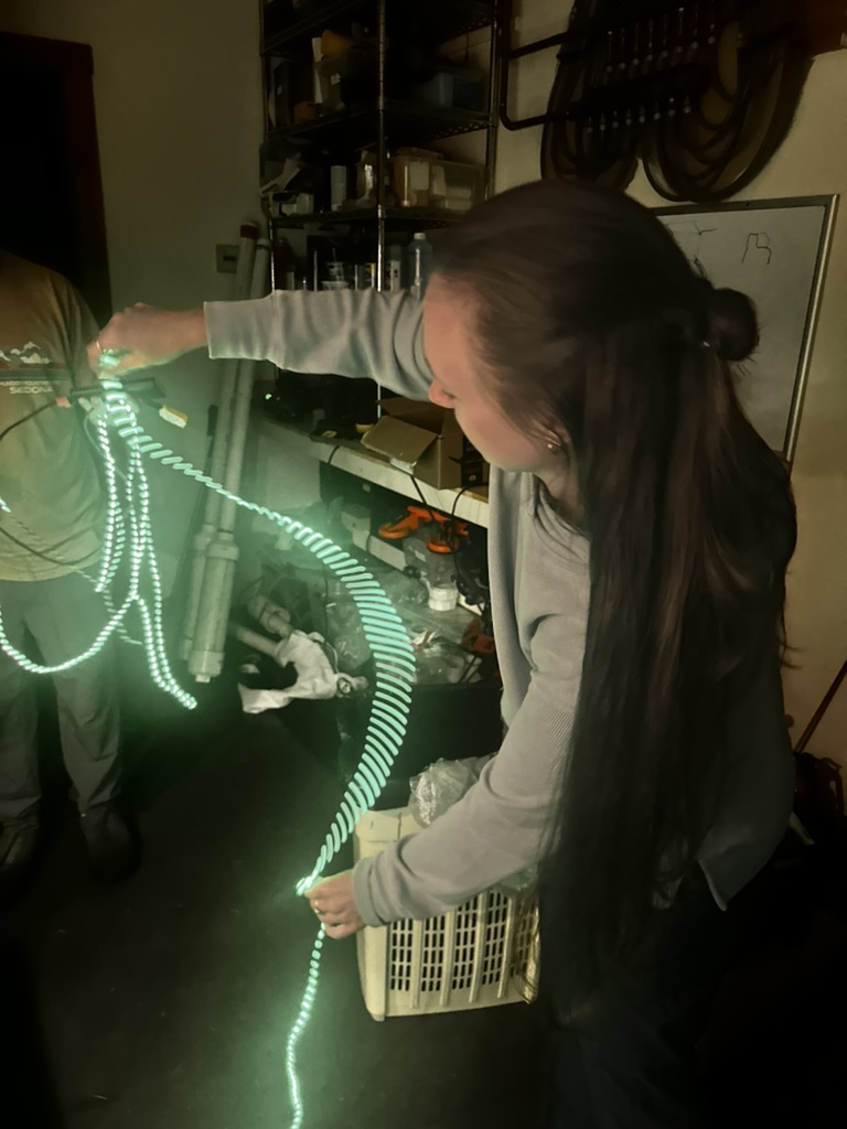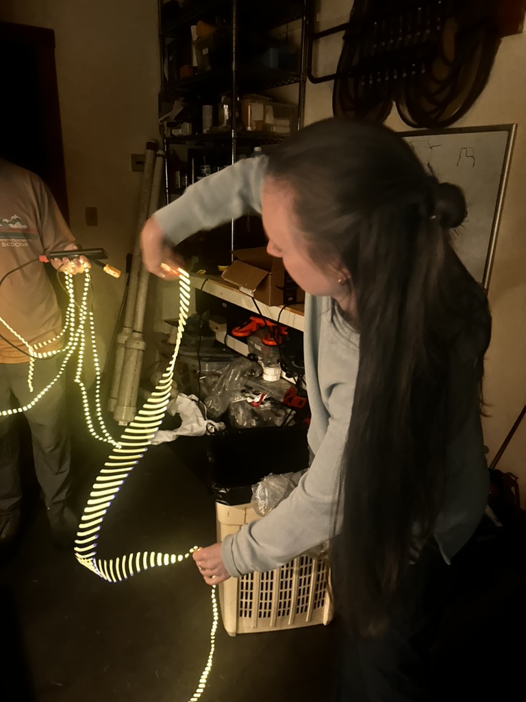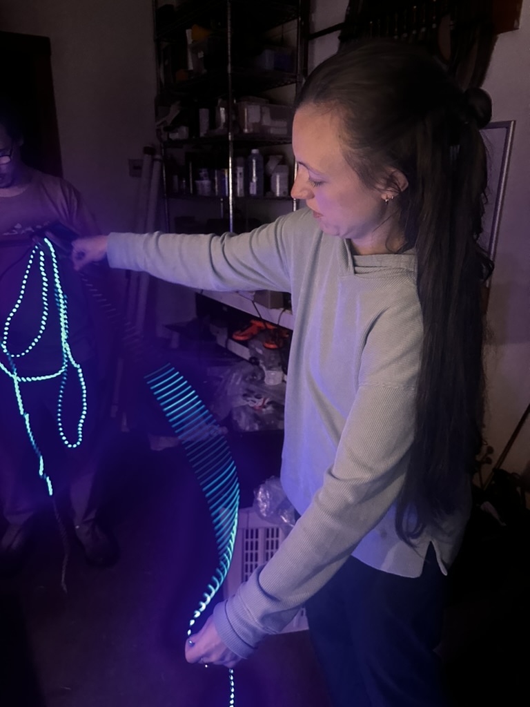 I also got to help Rachel.. the ‘den mother’ of the summer kids finish up her Fluffy project.. its a real light up version of fluffy that is lit by actuall fluffy patterns !