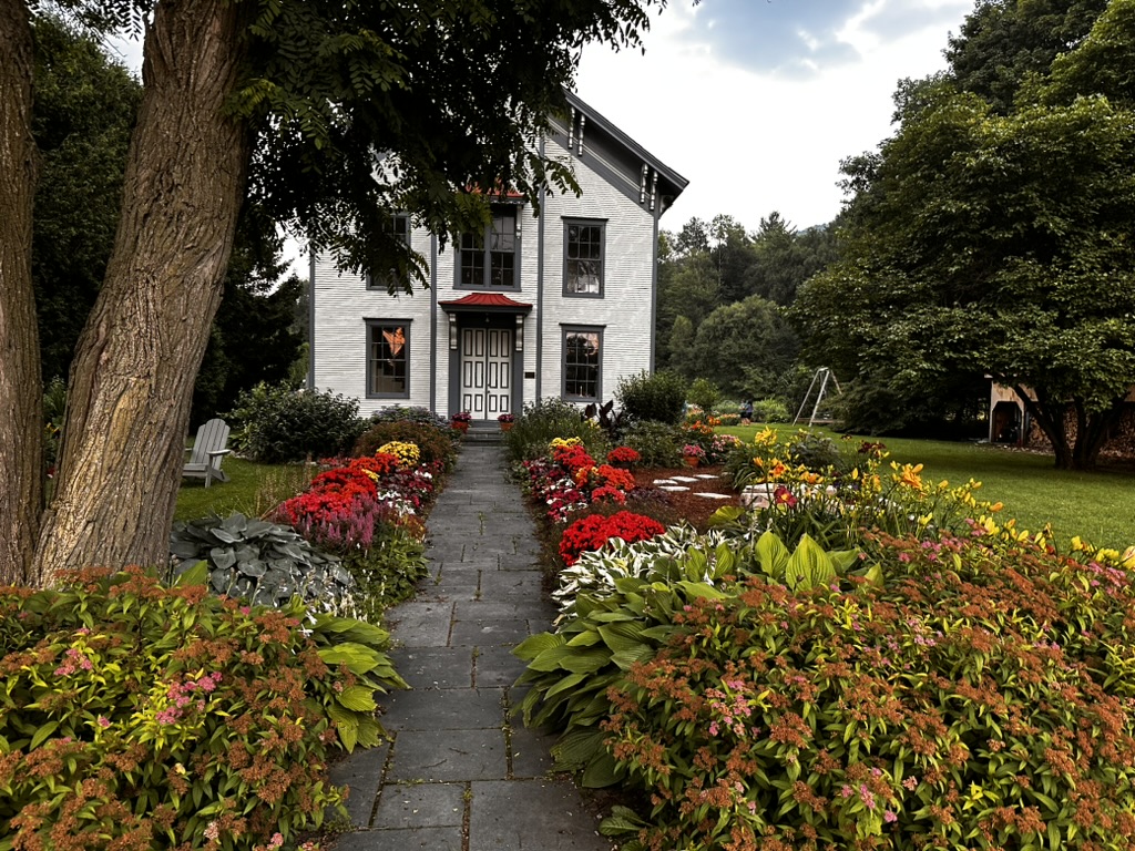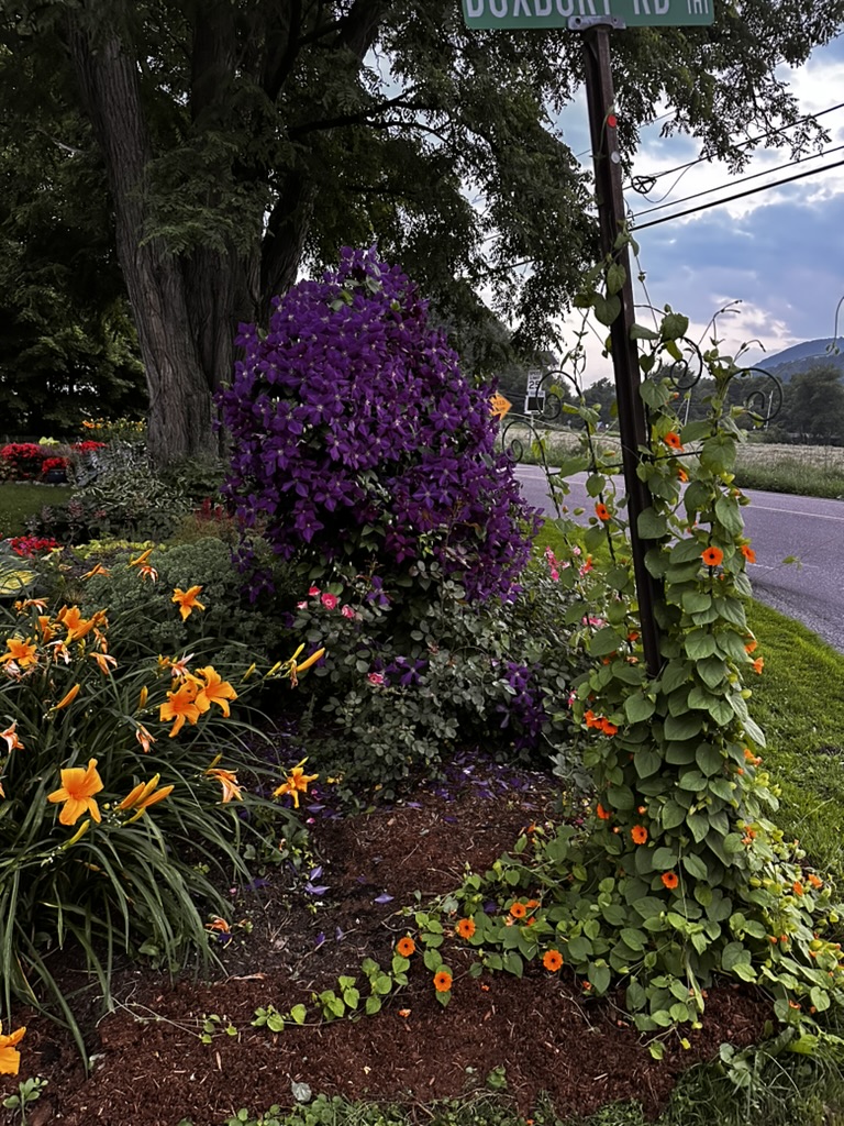 Diane s gardens are in full magnificance these daya.. its such a joy to have it like this.. we’re always gettign nice comments and waves from the folks who drive or cycle by. Its so much work. for diane.. but worth it , everyoen knows this house as the house with the gardons.. not the house with the creepy bell tower..