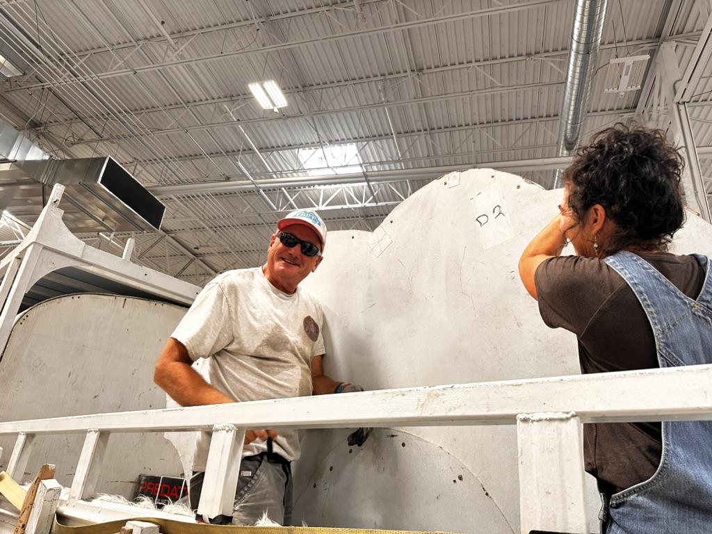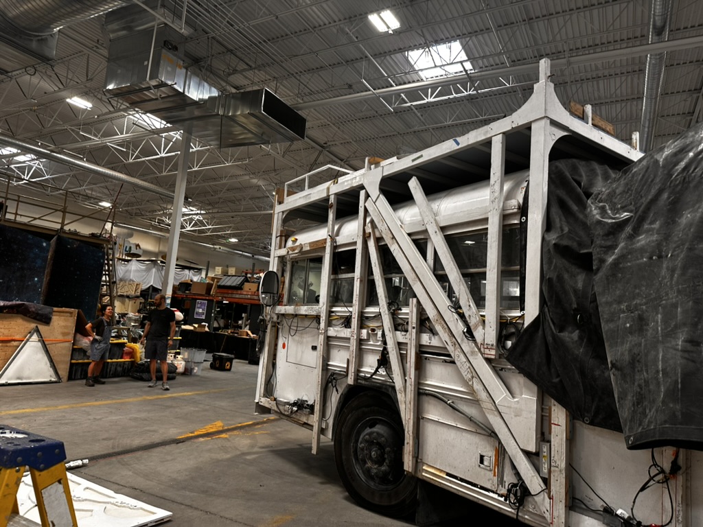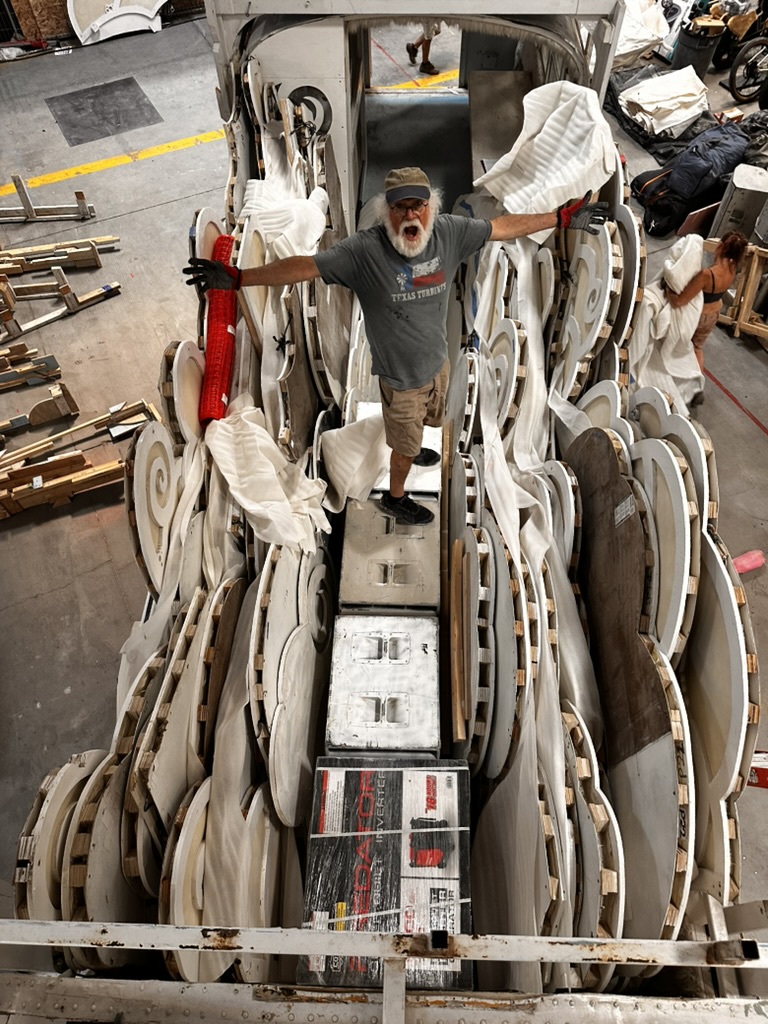 THis morning we all me at the Reno Generator.. maker space to begin assembling Fluffy.. We had to unload the clouds, order them.. then start the process of mounting them on the bus. DIane had the great idea to record the order and position of how the clouds were stacked in the bus to make it easier to repack them.