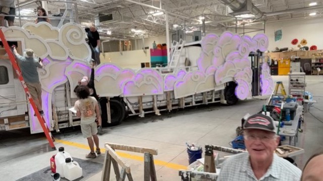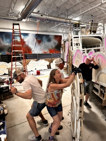 by about 8PM we had everythign working.. the original plan was to leave at dawn tomorrow.. but everyone was pretty beat… so instead we dcided to meet at 10 and start towards playa from there.. it’s gonna be a long slow drive as fluffy can only do 20-30 mph with her clouds on.. and we anticipate a long line to get in tot eh playa.. even though it’s still build week.