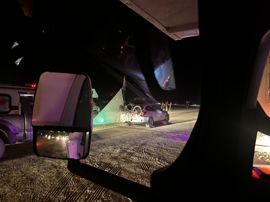 THen we were on our way tfor the long slow drive to the playa.. it was about 4 hours drive to teh burnign man access road.. then about 5 hours wait in line to get in.. actually not that bad !