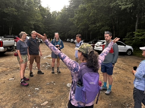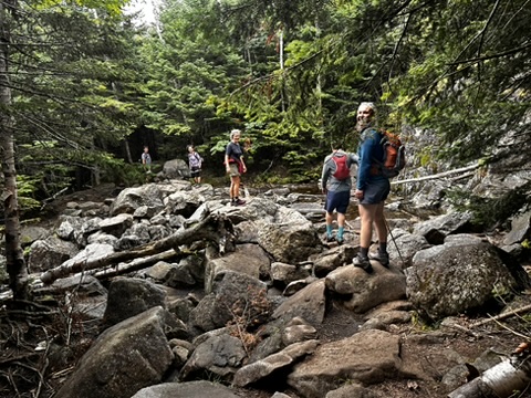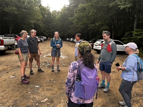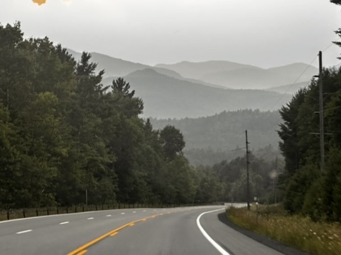 We came over to Lake Placid last night so we could join Lexy and Patrick on a pre wedding weekend hike up Algonquin moutnain. We were a small group as we started up through the fog and smokey haze. It was a nice hike.. nice to get to know the other hikers. no views because of the smoke.. at the top we opted to take the Wright Mountain peak instead of Algonquin. Somr interestign views of recent landslides.