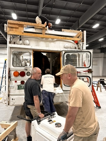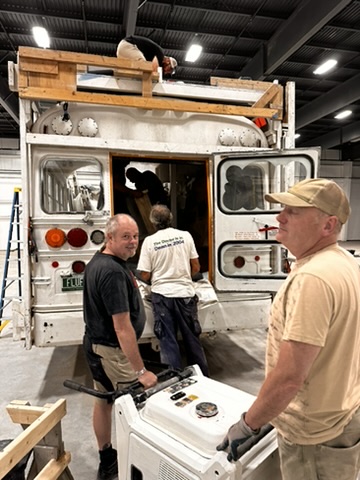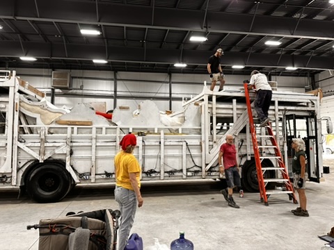 Today was all about dissasembling Fluffy and packing her to be shopped to the dessert. First all the clouds had to come off. then they had to be carefully stacked in side her.. then all the other gear for camp and fopr [perspna; us on top and aroudn the clouds.. it was a ton of wrok. but we got it done today !