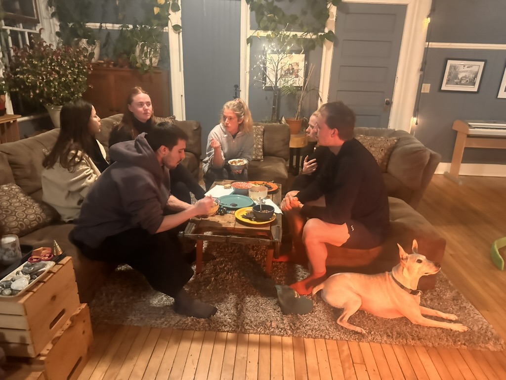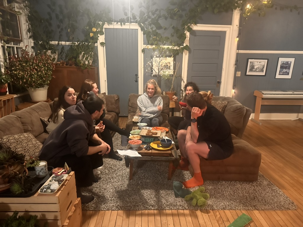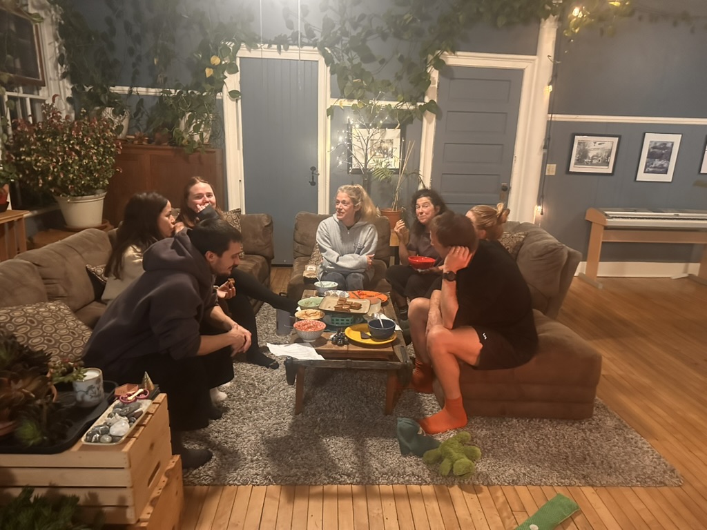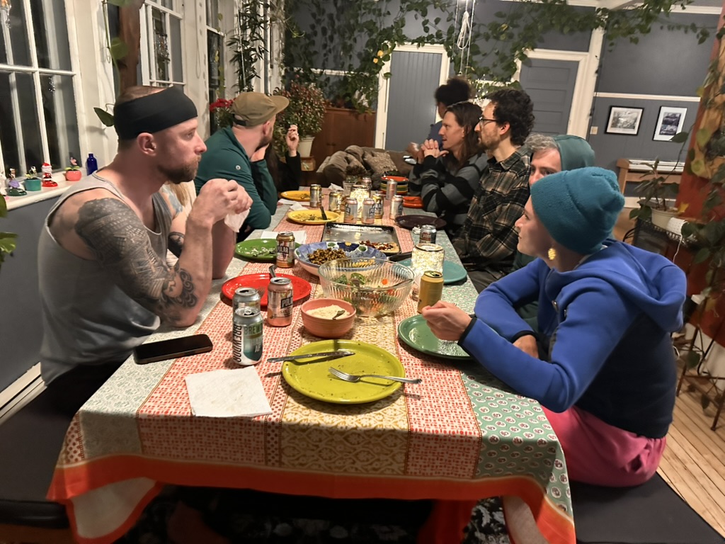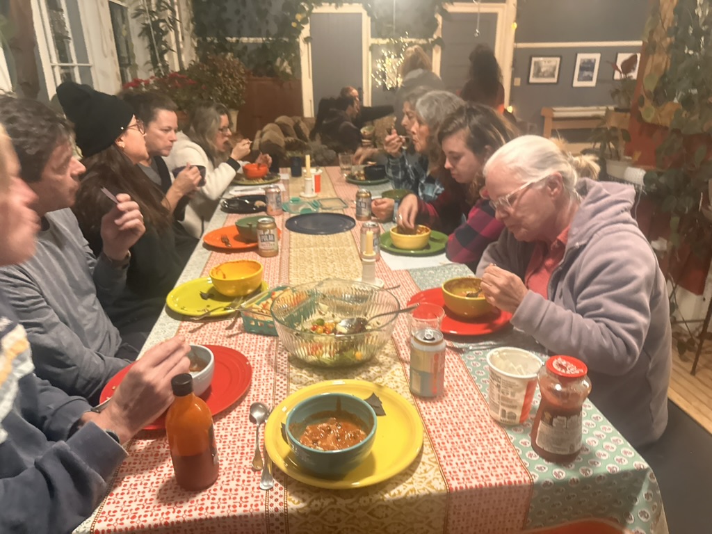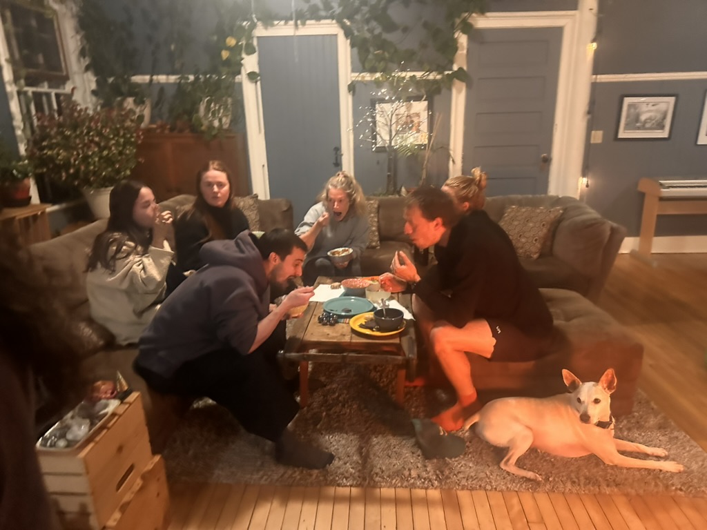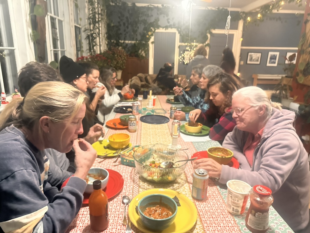 tonight diane gave a great yoga class Hannah, and Oliva are here visiting from France.. I was also surprised to see Olivia;s friend Antoine and Bella who are up from Brooklyn. I casually mentioned that Max had lived on a boat in Brooklyn. Thye said.. they have a freind who just baugt a boat..
