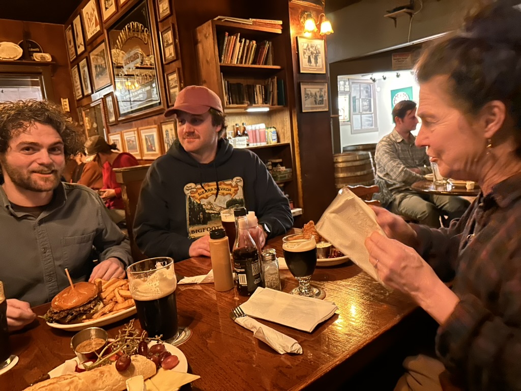 we took a break this evening after Gabe’s Mandolin lesson. Gabe picked Biane, me and Seans up and took us to a pub Moon and Sixpence where we got to meet his Mandolin teacher Rene. and Renes friend Jeff. Rene is anaamazing musican.. he can play anything.. his main instrument is guitar…. thoguh hes a great mandolin teacher. With Rene’s help Gabe is gettign so good !