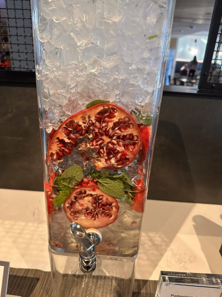 we also appreciate the pommegranite mint water in the United lounge.. it looks like art !