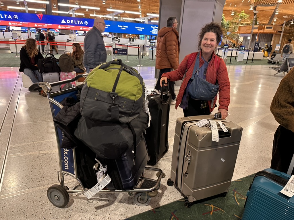We caught an early morning uber to the airport with 6 suitcases.. we’re acting as mules for some of Gabe’s stuff on all our trips back