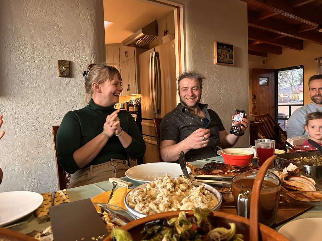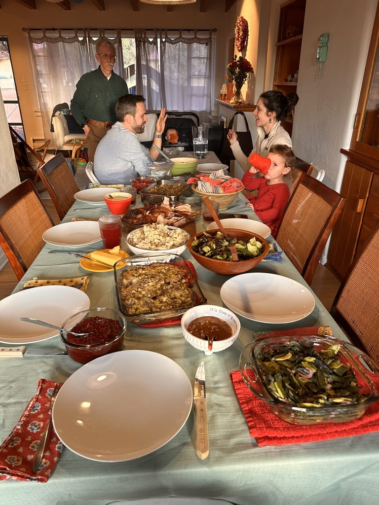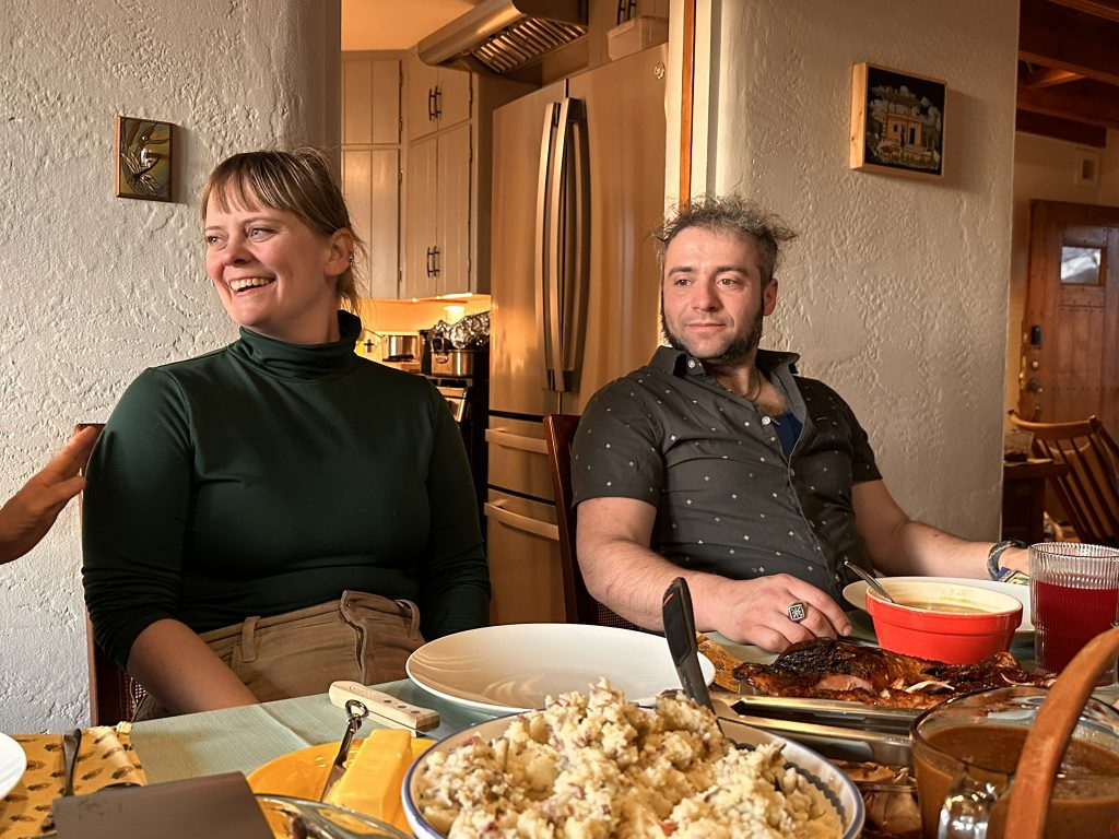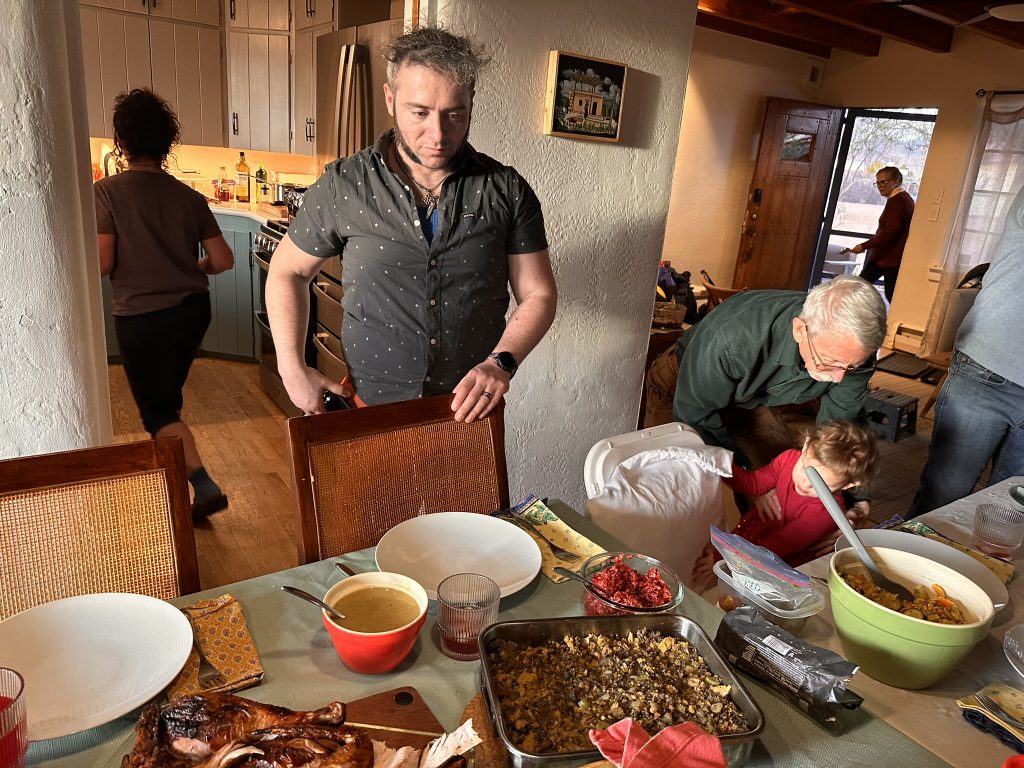 the rest of the day was about gettign ready for dinner. Max cooked the turkey while becky and diane saw to all the other dishes. It was southwestern themed thanksgiving with dishes for vegitarians, non -dairy peopke, gluten free people, non alchohol drinking people.. and just people 🙂