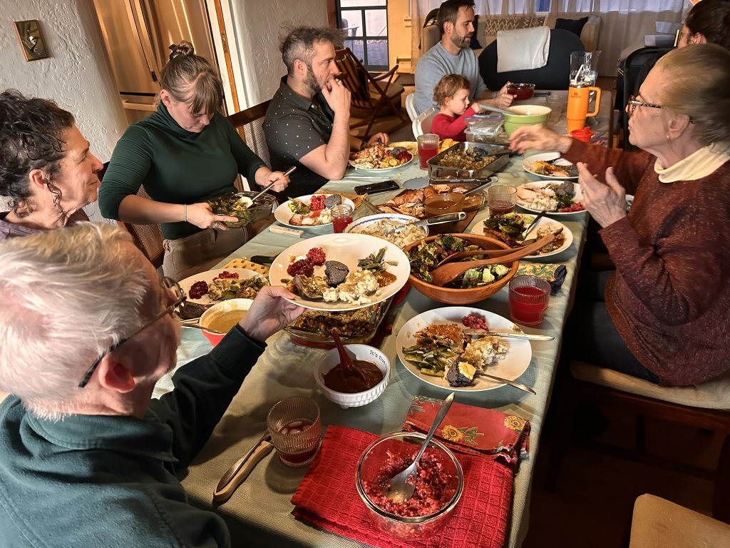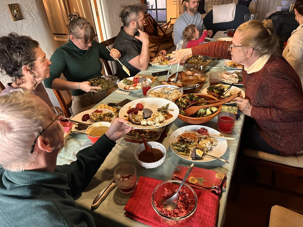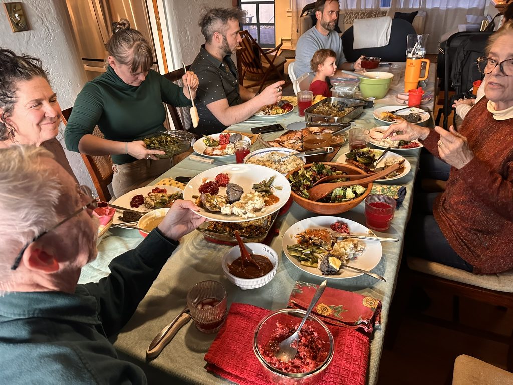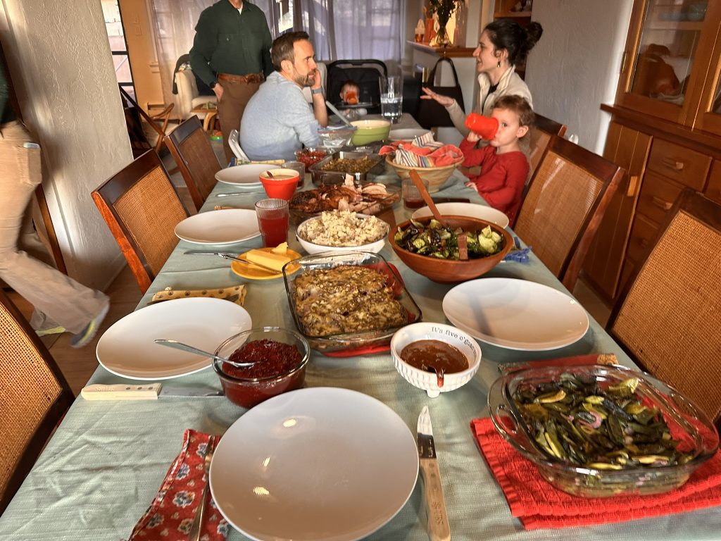 the rest of the day was about gettign ready for dinner. Max cooked the turkey while becky and diane saw to all the other dishes. It was southwestern themed thanksgiving with dishes for vegitarians, non -dairy peopke, gluten free people, non alchohol drinking people.. and just people 🙂