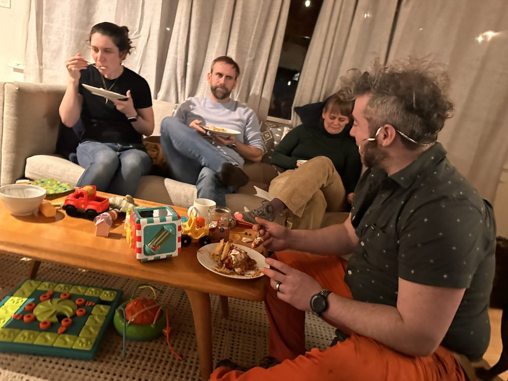 At about 8, the Neils gathered up and went home, while diane, max, becky and Iwalked across the steet to their house to watch a movie (guillermo del torres Frankenstein for the 2nd time _
