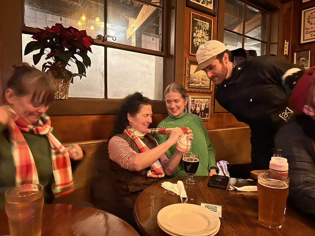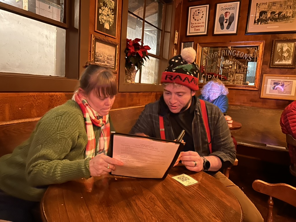 In the evening, Gabe went off to his Mandolin lesson, then we all (me, diane. gabe, mya, max and becky) me up at the Moon and Sixpence.. its now officially our favorite bar in Portland.. it’s a really authentic english style pub (We know.. we lived in england !) with live irish music.