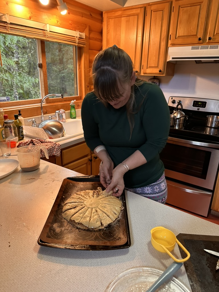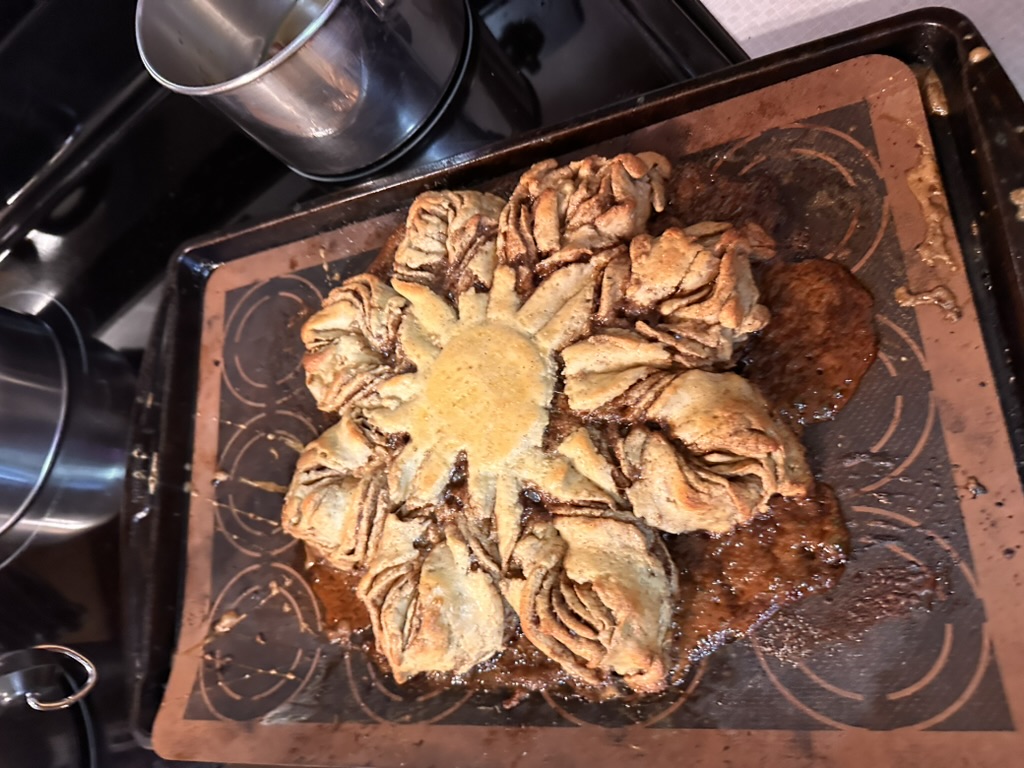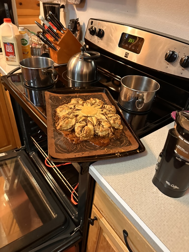 Seems like we were cookign all through the day. Becky made this beutiful cinnamon sweet bread