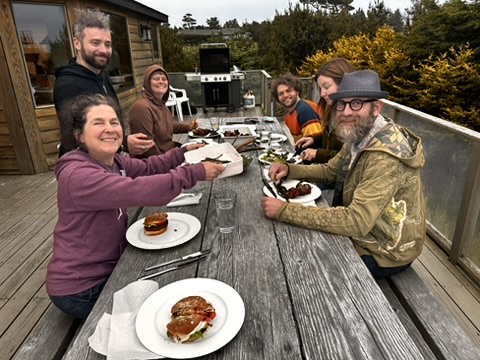 Yesterday was long, fun and exhausting.. our intent for the rest of the week was to just hang out. . so around noon we packed into 2 cars and hjeaded to the coast. I’d rented an airbnb just sounth of Astoria.. and it was perfect… it was huge .. had a hot tub and a short private walk to the beach.. just what we needed to unwind