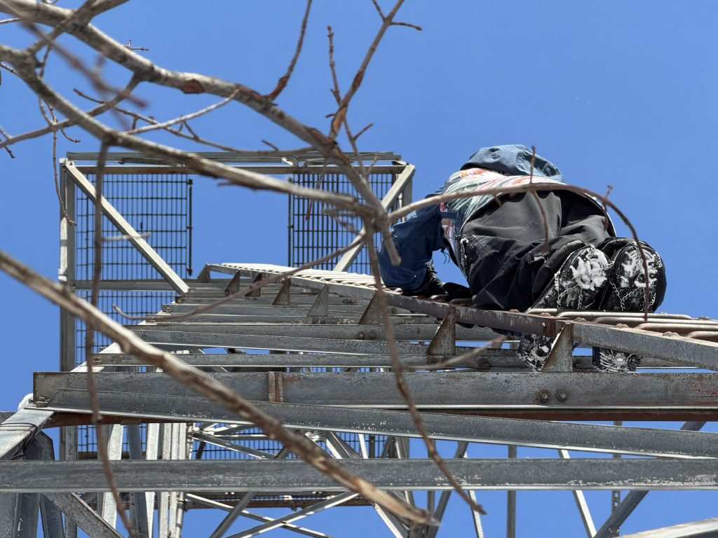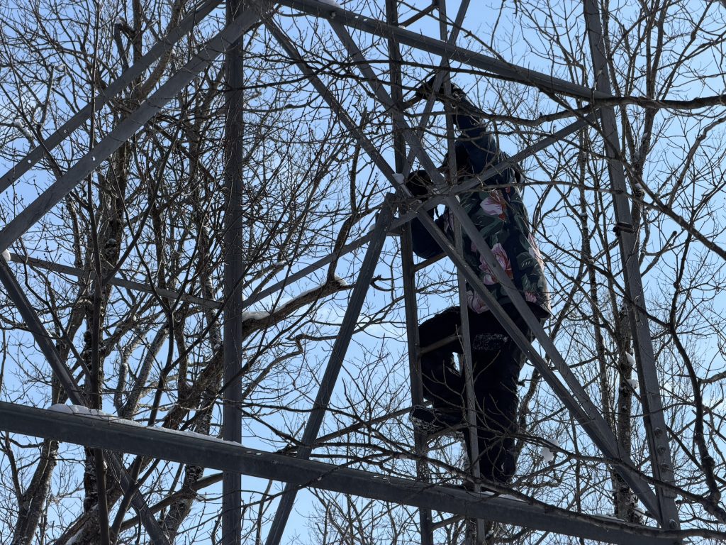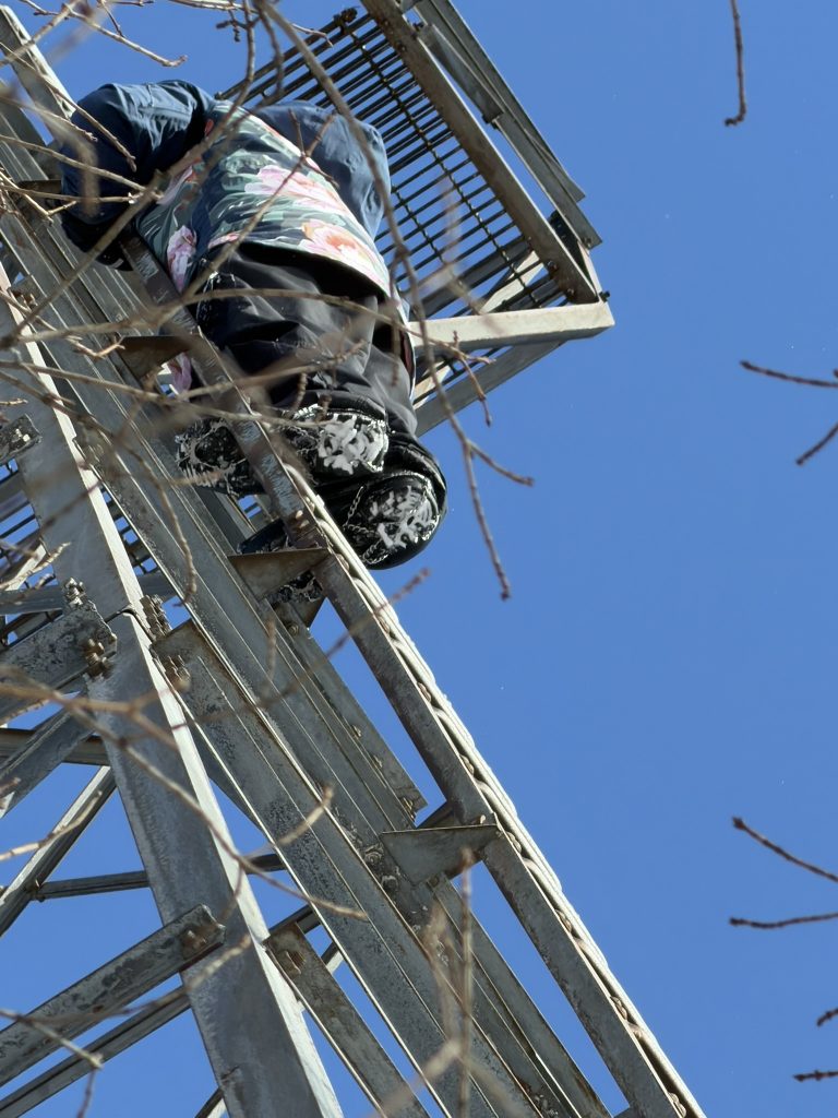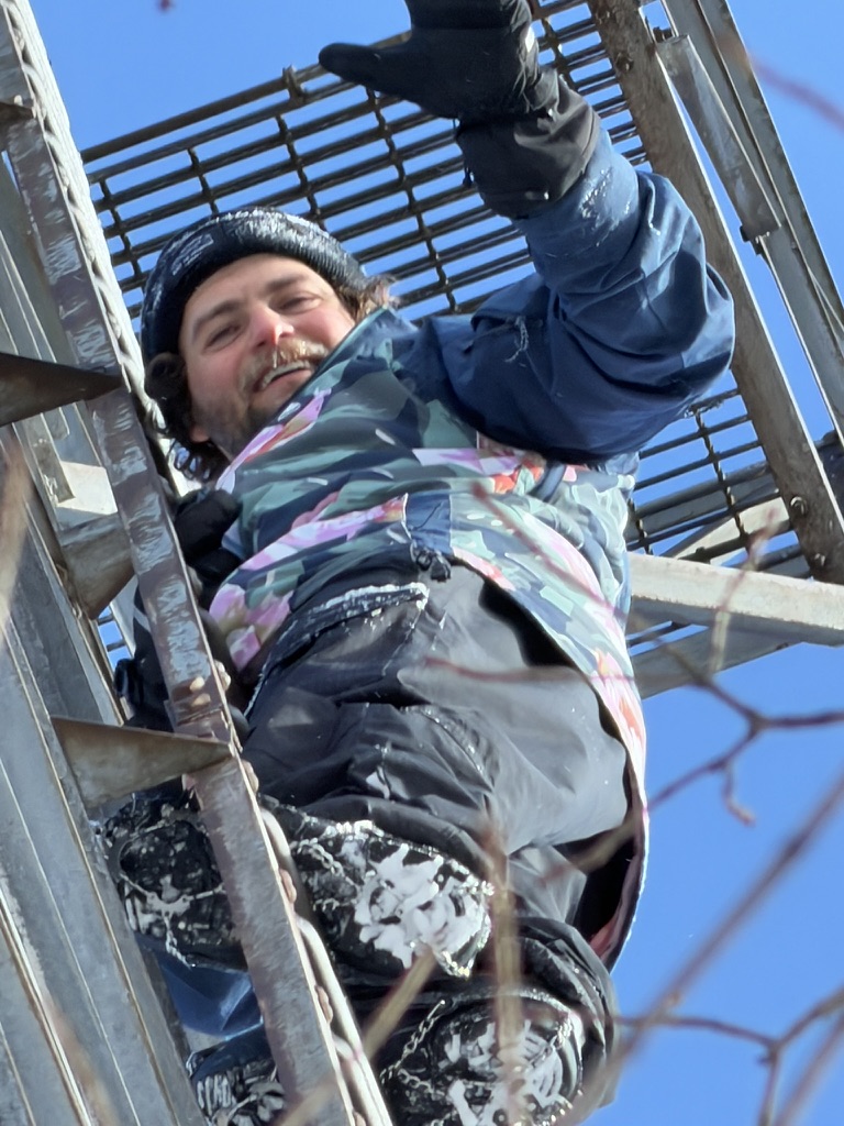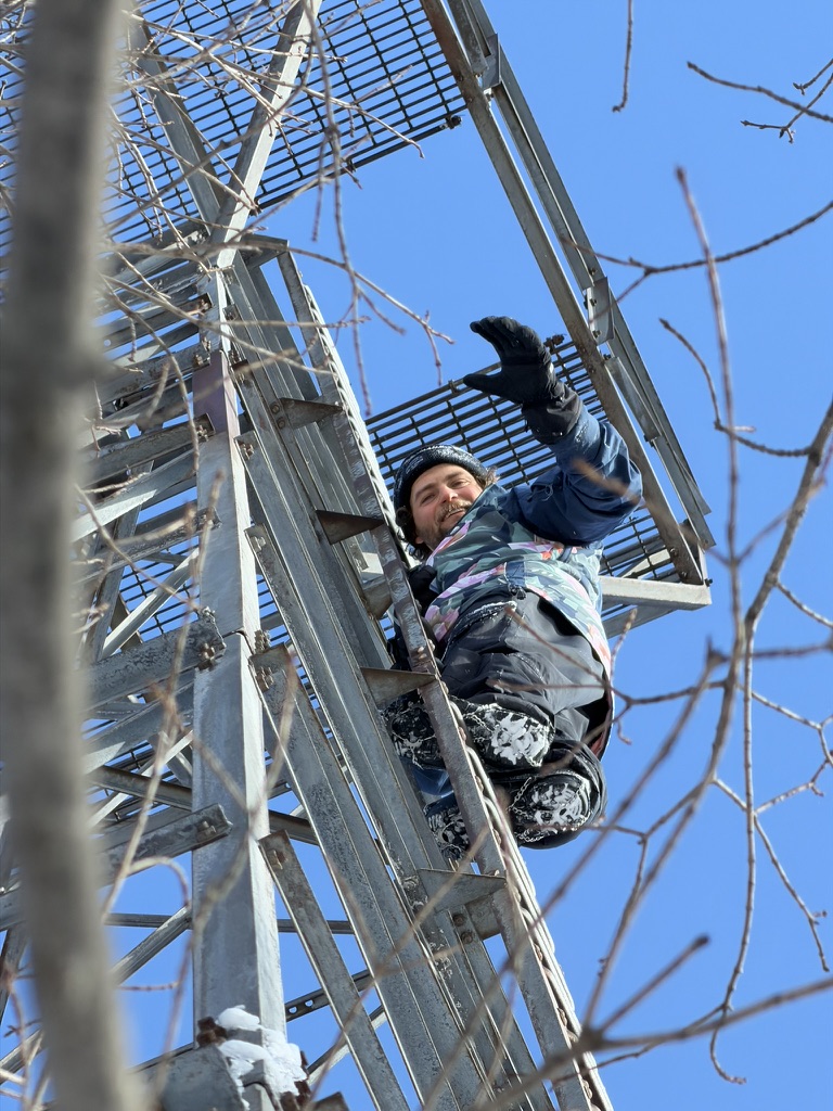 we hiked up to stimson mountain.. to find the old airplane tower thats there. Like always, we had to hunt around for it, which was pretty difficult in the deep snow, but we eventually found it. It’s amazing that this thing just stand 70 feet tall straight out of the woods and isn’t really on anybody’s map.… It was super cold so gabe was the only one who climbed it. He got about 3/4 way up before it got too cold. It was gorgeous out. There’s such a great view from there.