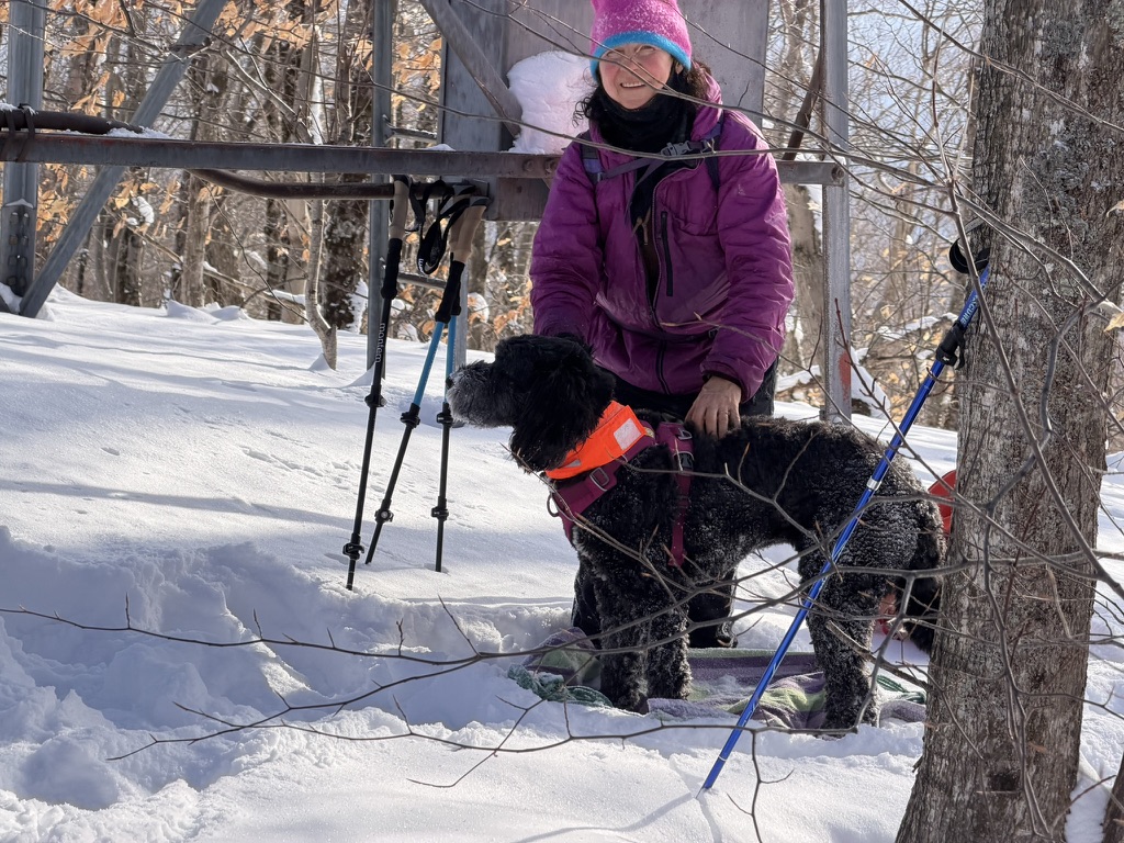 Gabe Nova, Diane and I decided to hike up from the sugar shack to Stimson mountain.. the snow on the VAST trail was deep but passable.. off trail we were in knee deep snow !