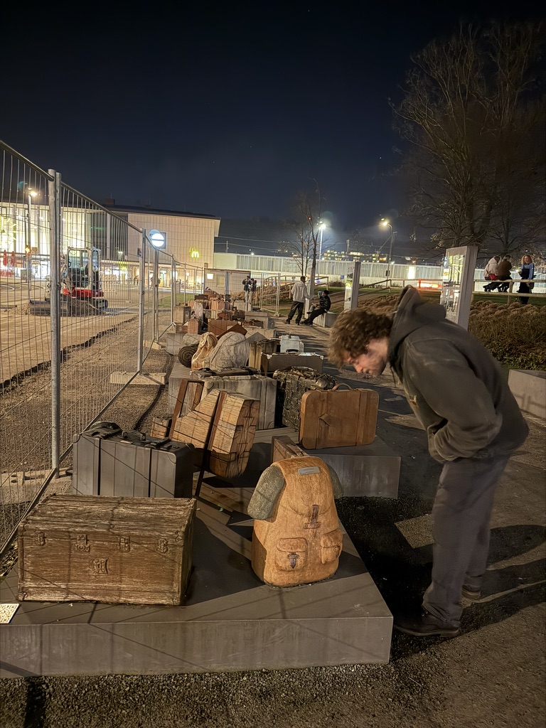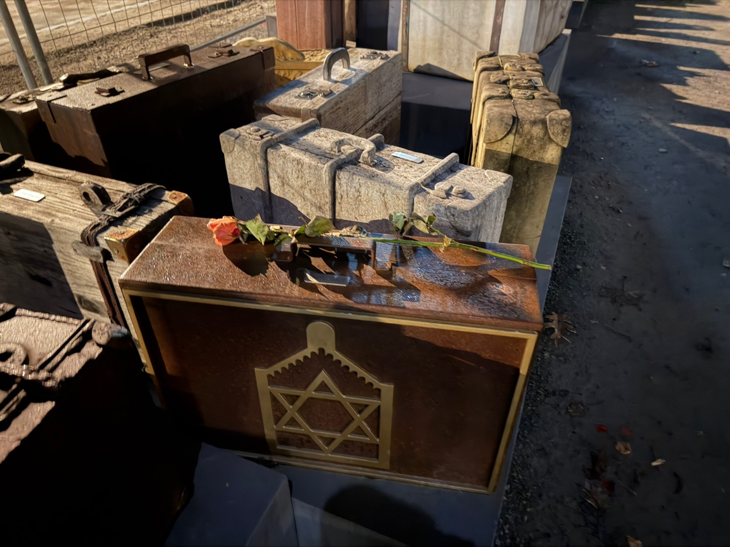 From there we walked to the trainstation because it ws nerby. Gabe showed me the memorial to the holocost victims who were deported from here.. There was this amazing sculpture garden that represented their personal belongs tht they braught to the train station.. but were not allowed to keep before being shipped to the death camps. It was. Very moving