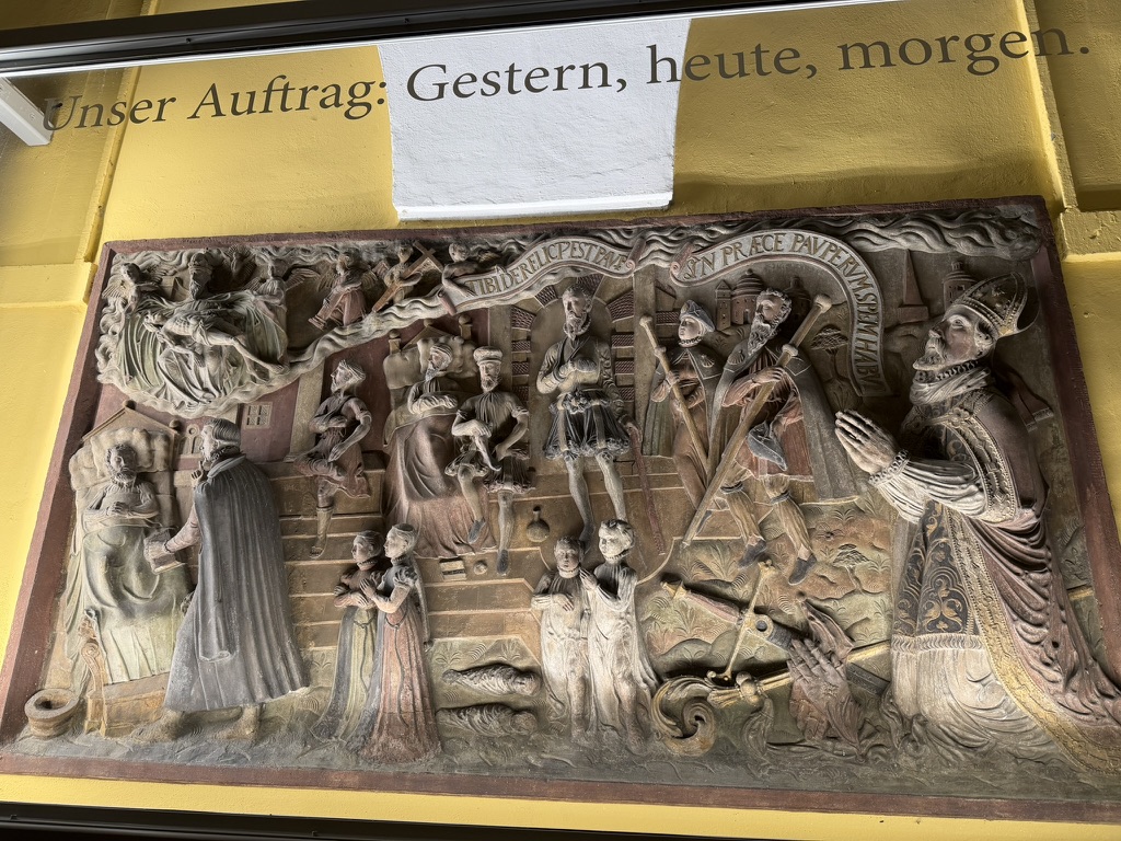 so…. After that we needed some ligthenss.. so We took a long beautiful walk back to the BNB .. we found this very cool 16th century hospital, the Juliusspital that is still operating in some capacity , though we couldn’t figure out what exactly they did there.. it was this huge 500 year old bulding with very cool history panels about people like Rudolph Virchow .. the father of cellular biology .. he said “(Omnis cellula e cellula)" “all cells come from cells “.. It was amazing to be walking atond this place that is totally ope to the public.. and be there by ourselves