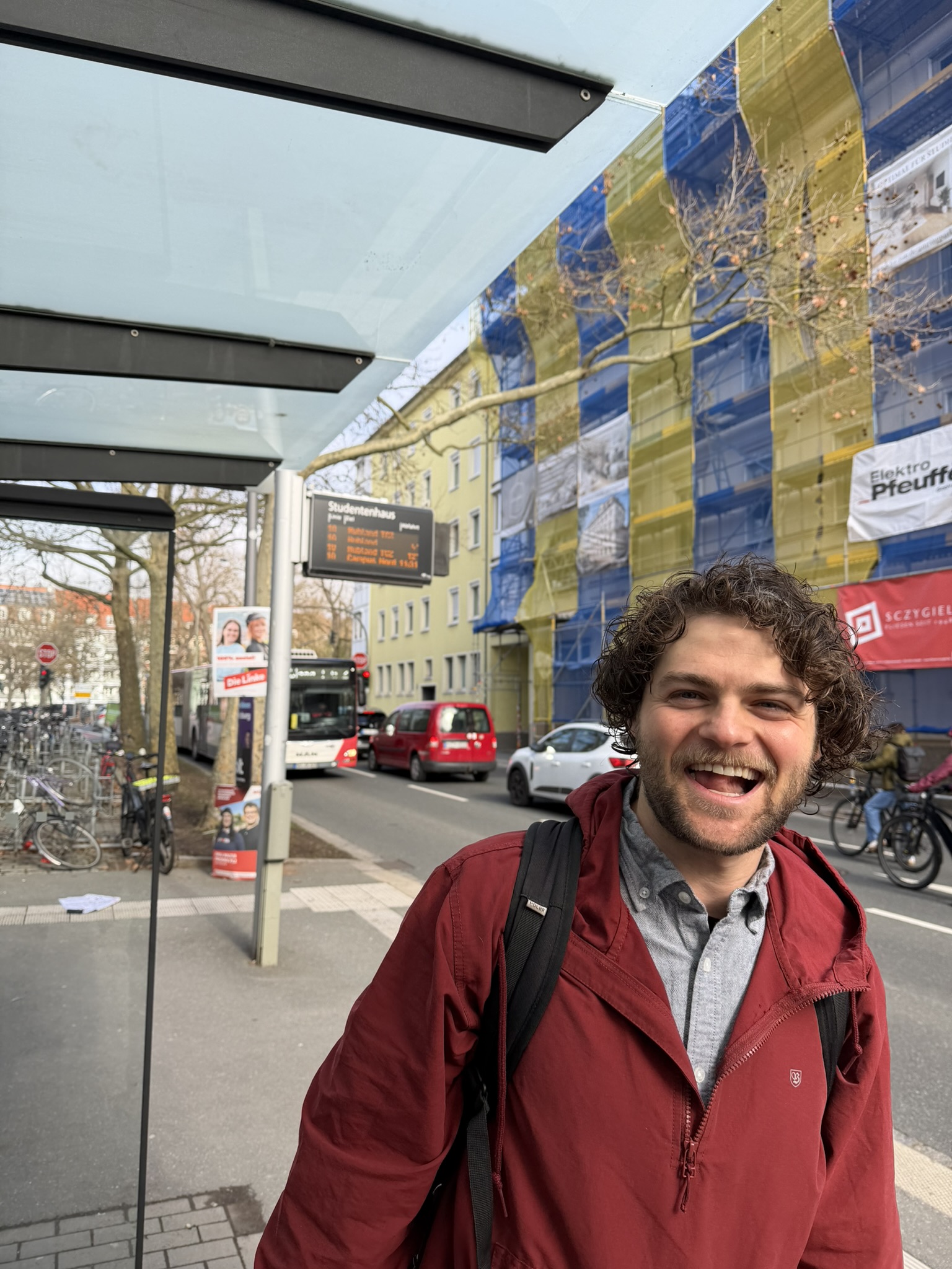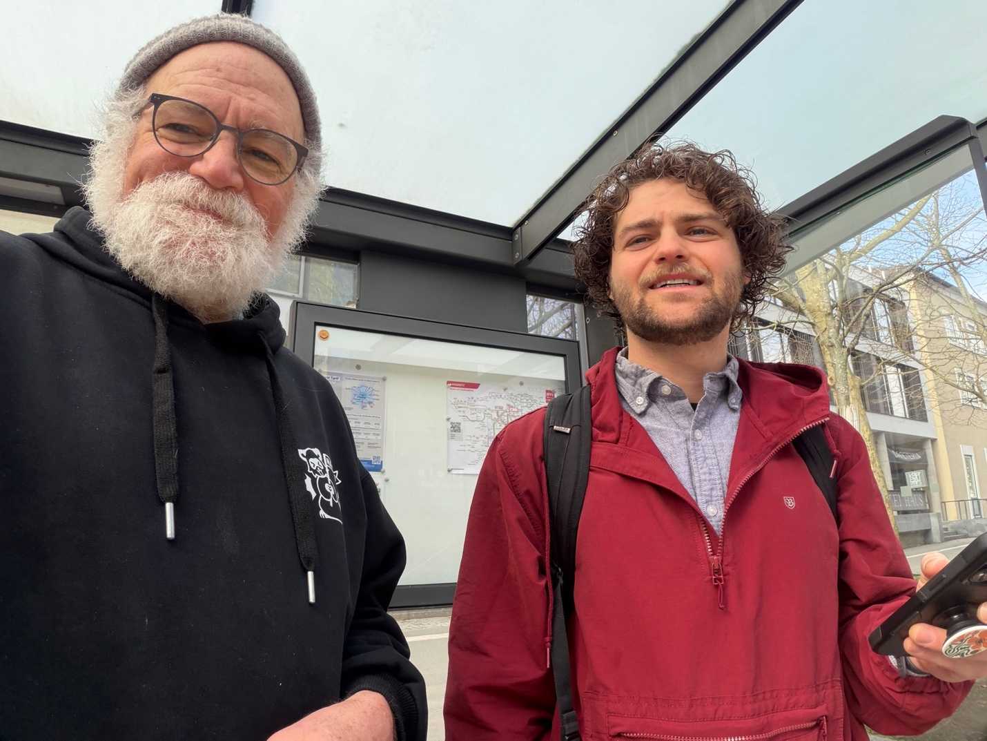 Today was a big day for Gabe .. He went in to work for the first time to talk to his new PI Prof Martin Eigler. It was fun walking him to the bus stop
