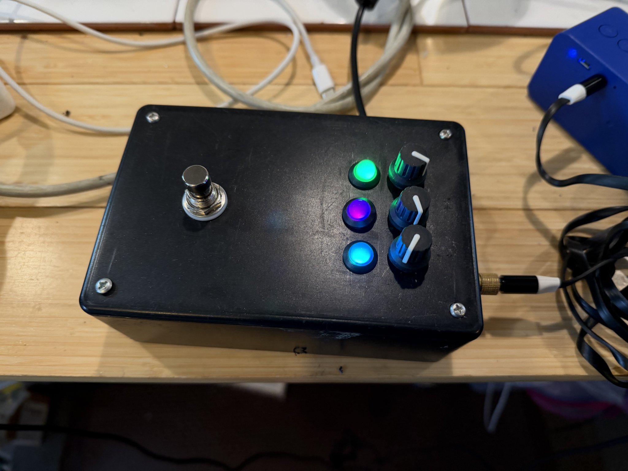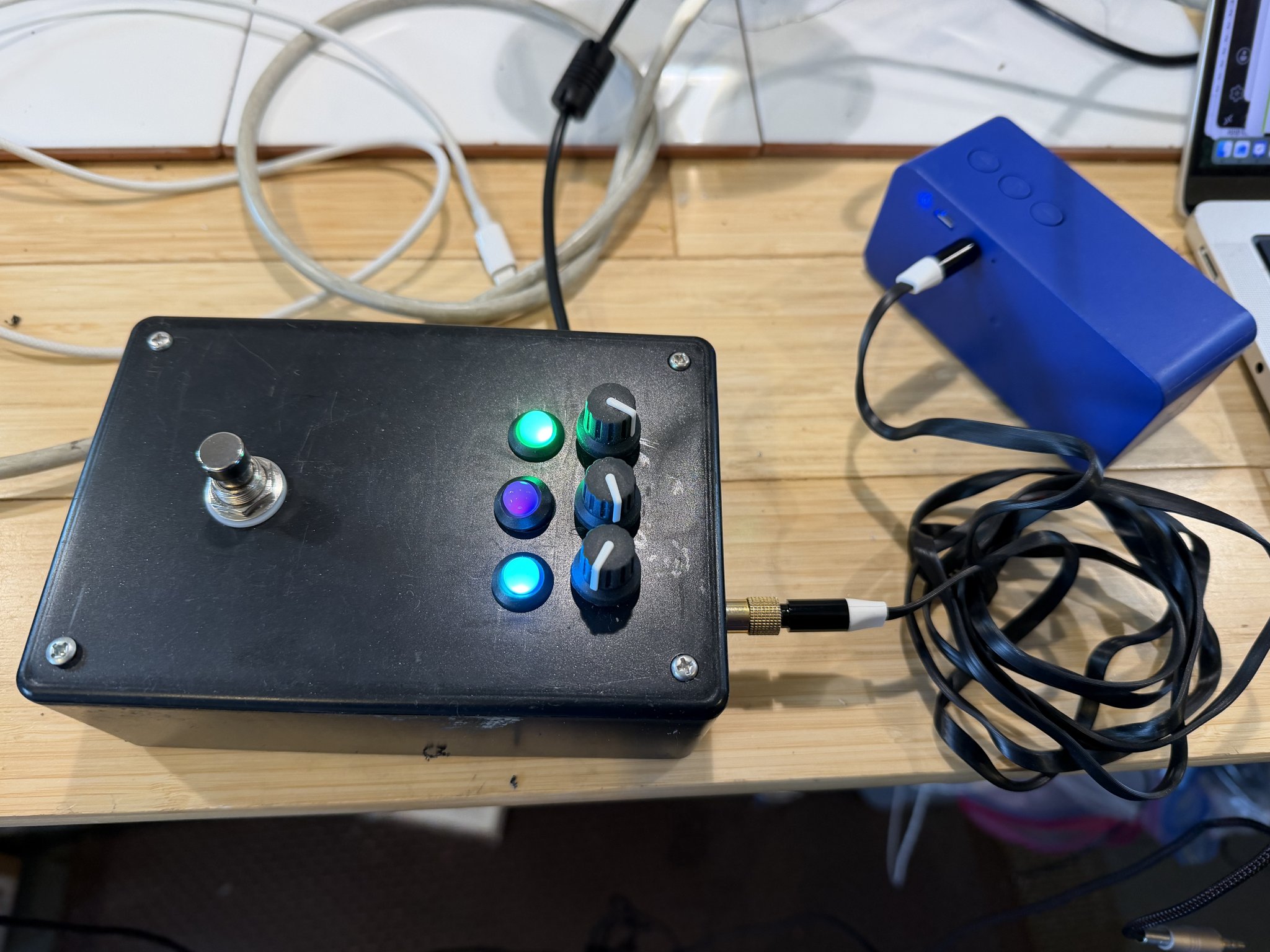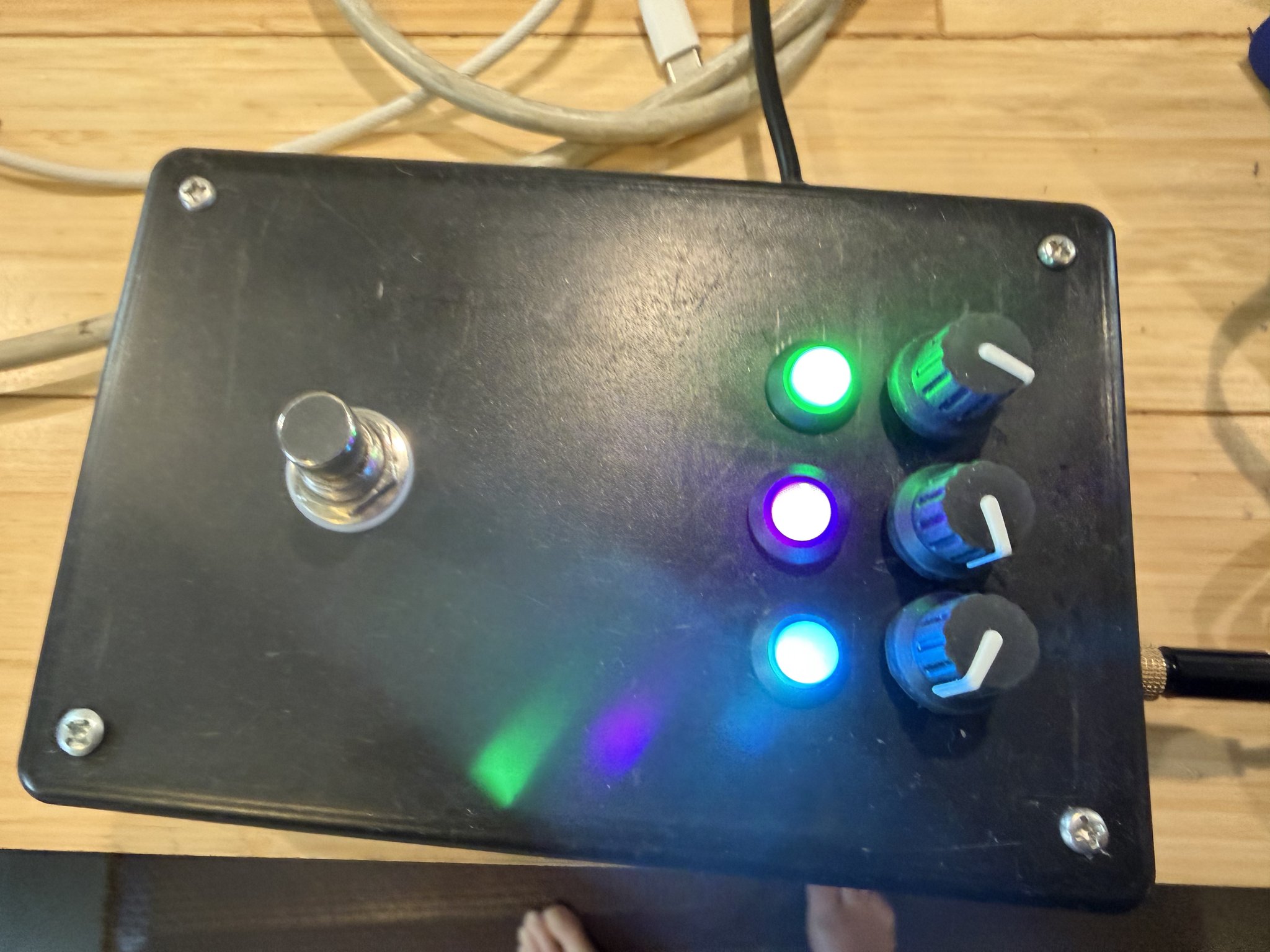 Anyway, the goal is always been to be able to make this thing into a standalone affects pedal size device. We took a big step for the last few weeks. I was actually able to miniaturize all of the electronics and code into a small stomp switch box. This is just an interme test set up or will actually put it into a nice custom box. But the cool thing is.
