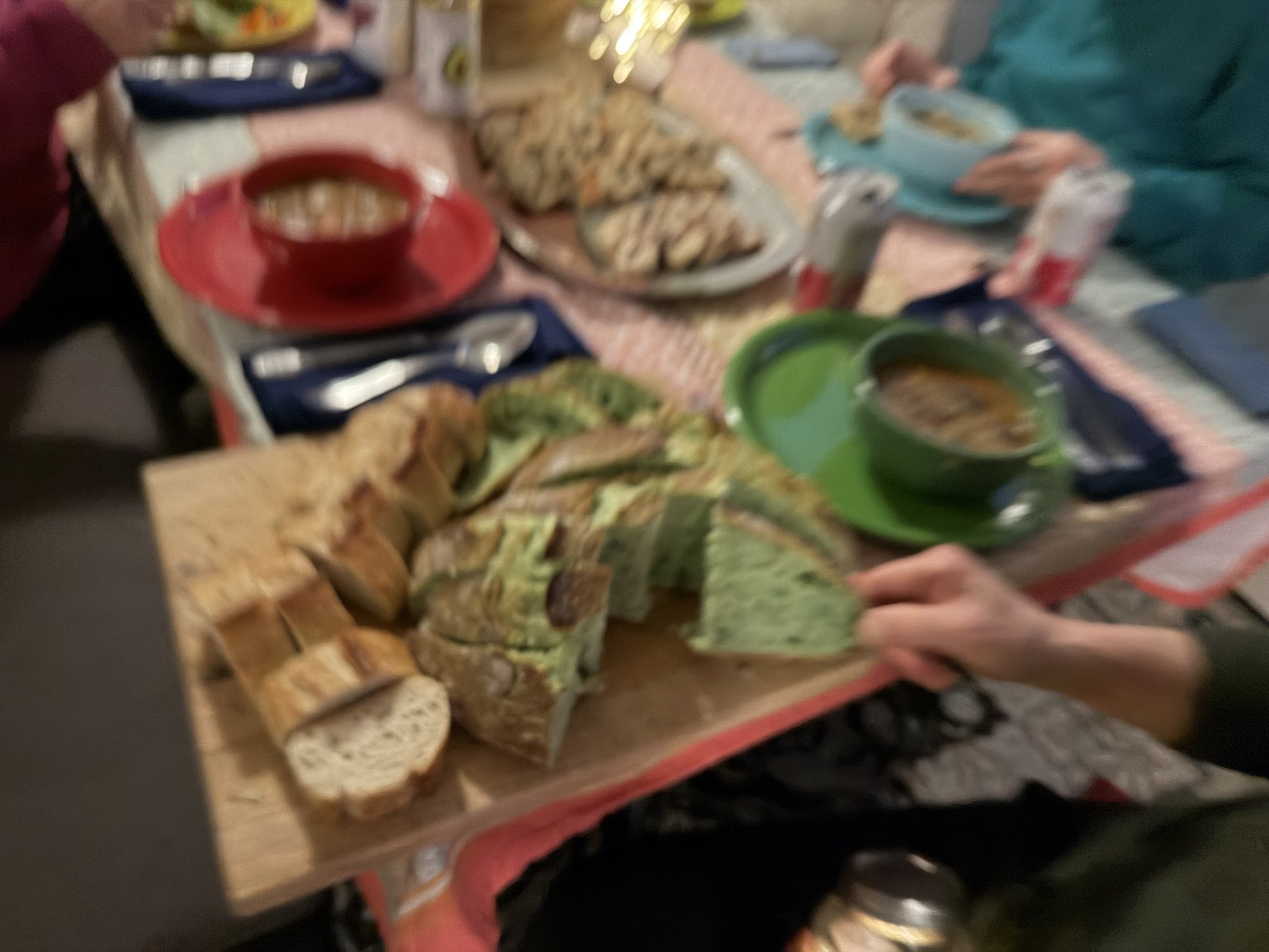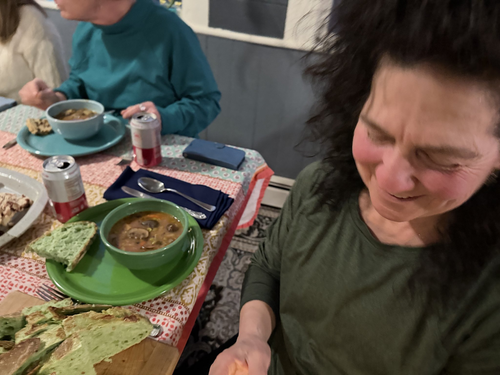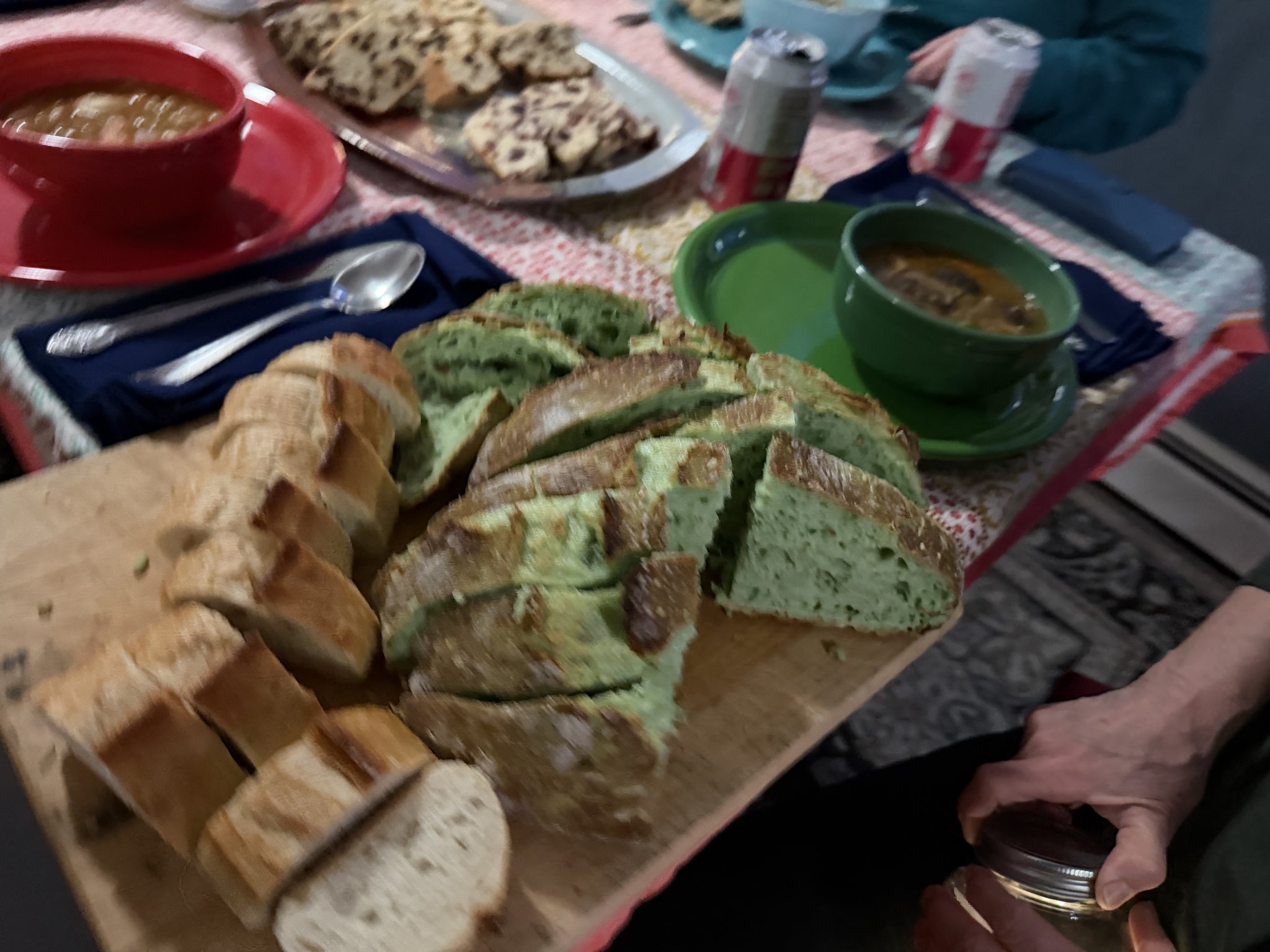 Today was St. Patrick’s Day and we celebrated it in style by having a Saint Paddy’s day Yoga soup night.… Diane started the class by having us all read Irish proverbs which was fun.… After yoga, we all went inside for a completely green meal, including green bread… And Iris soda bread and lots of fake bad Irish accents. It was really really fun.