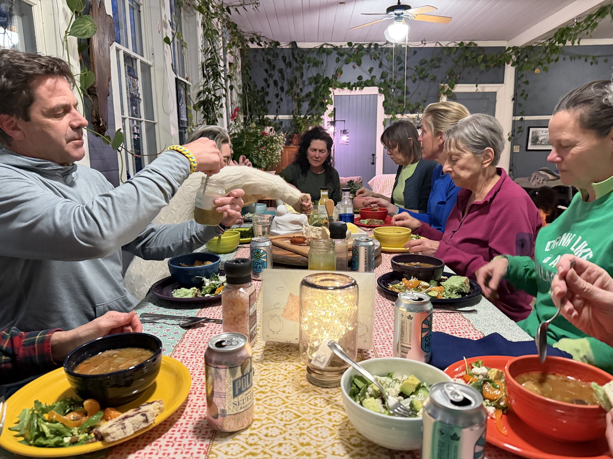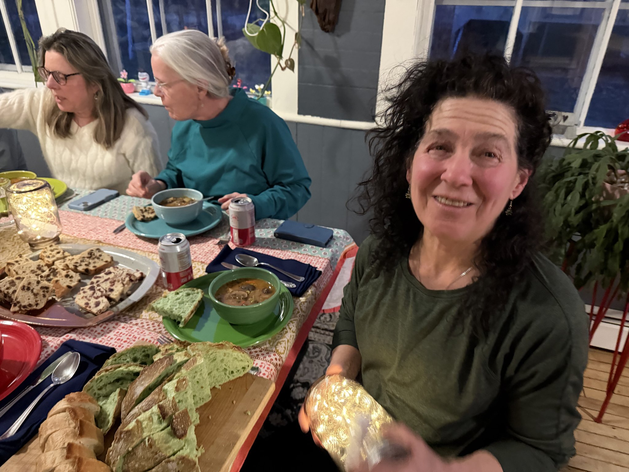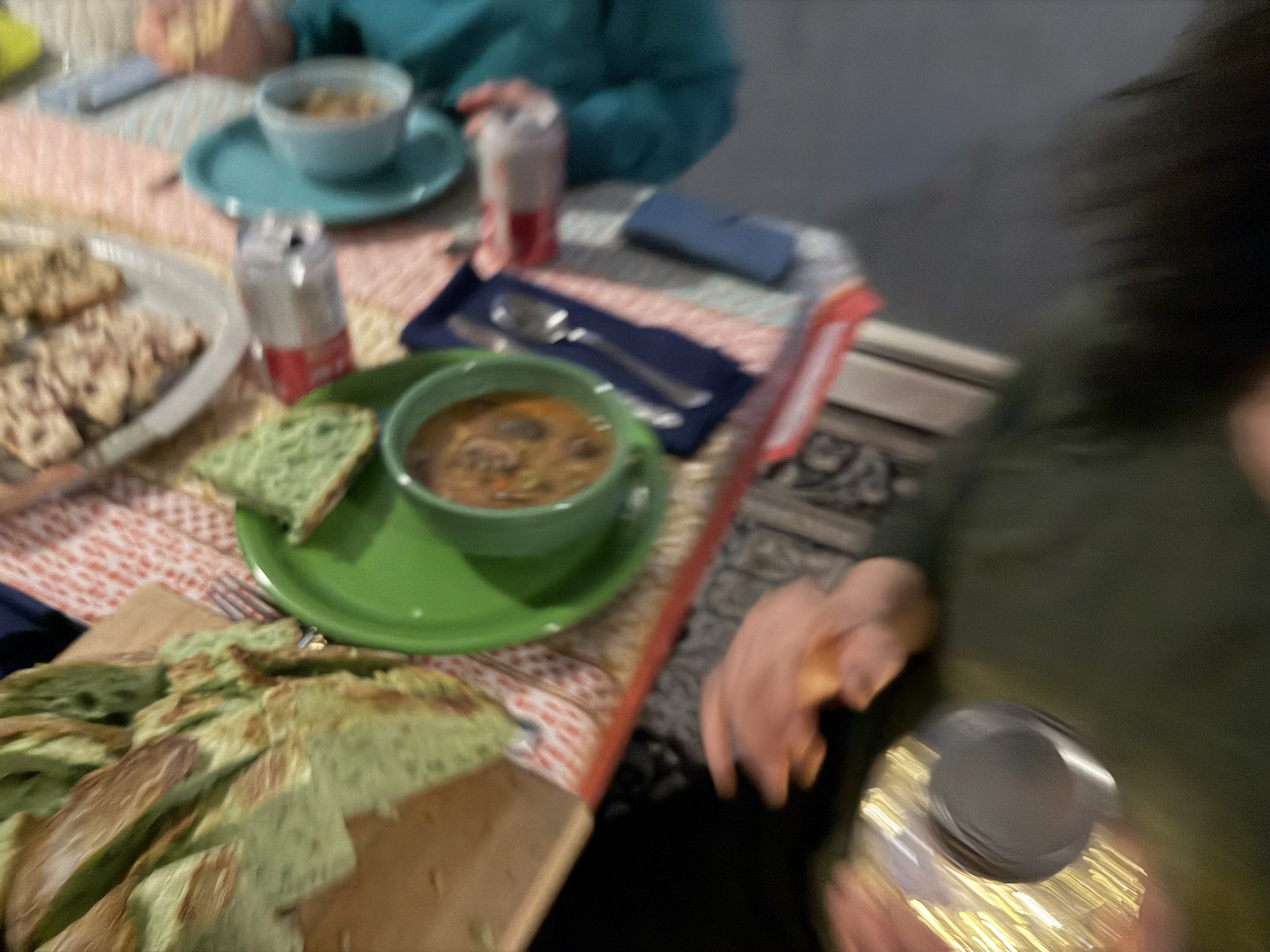 Today was St. Patrick’s Day and we celebrated it in style by having a Saint Paddy’s day Yoga soup night.… Diane started the class by having us all read Irish proverbs which was fun.… After yoga, we all went inside for a completely green meal, including green bread… And Iris soda bread and lots of fake bad Irish accents. It was really really fun.