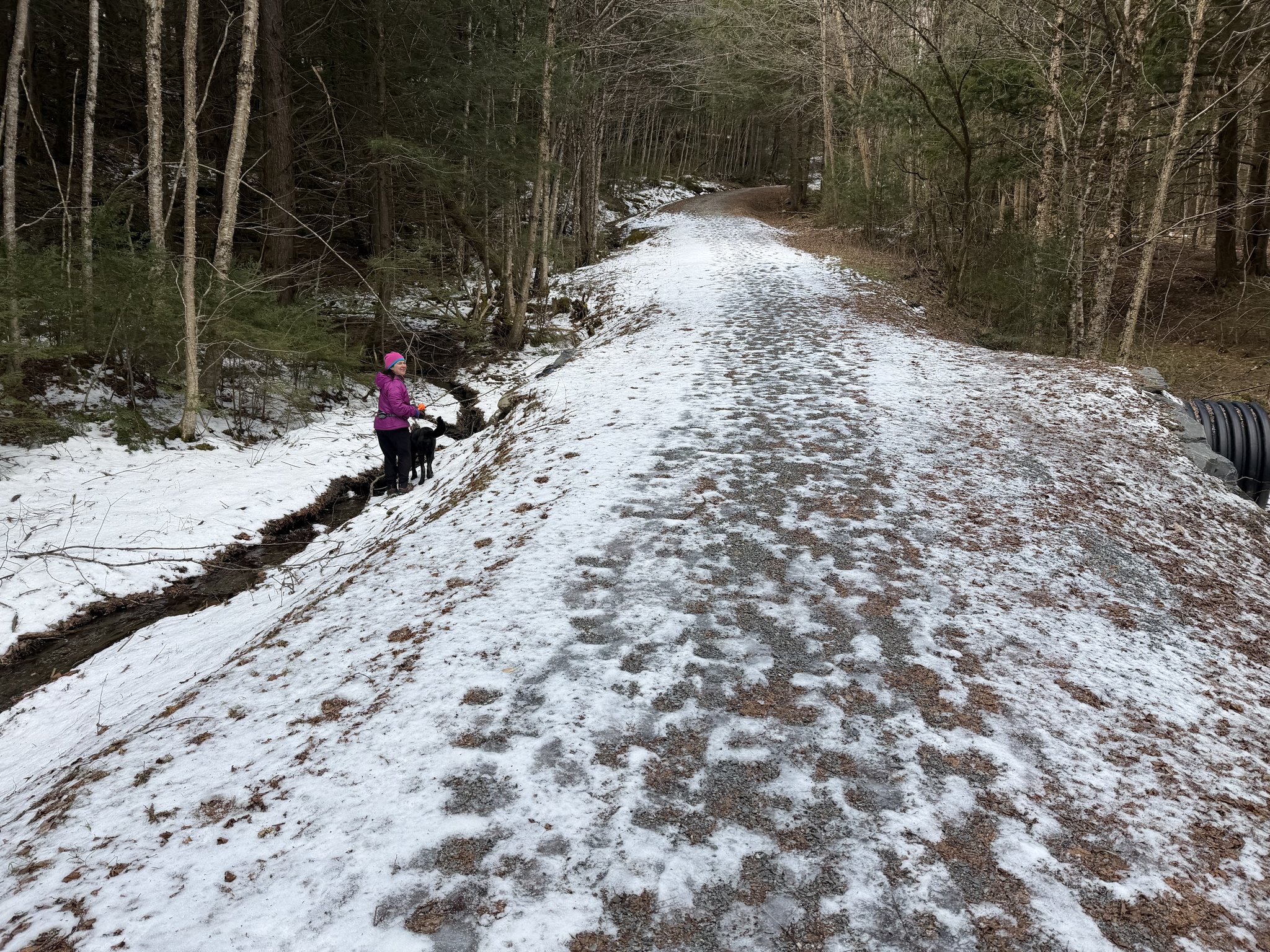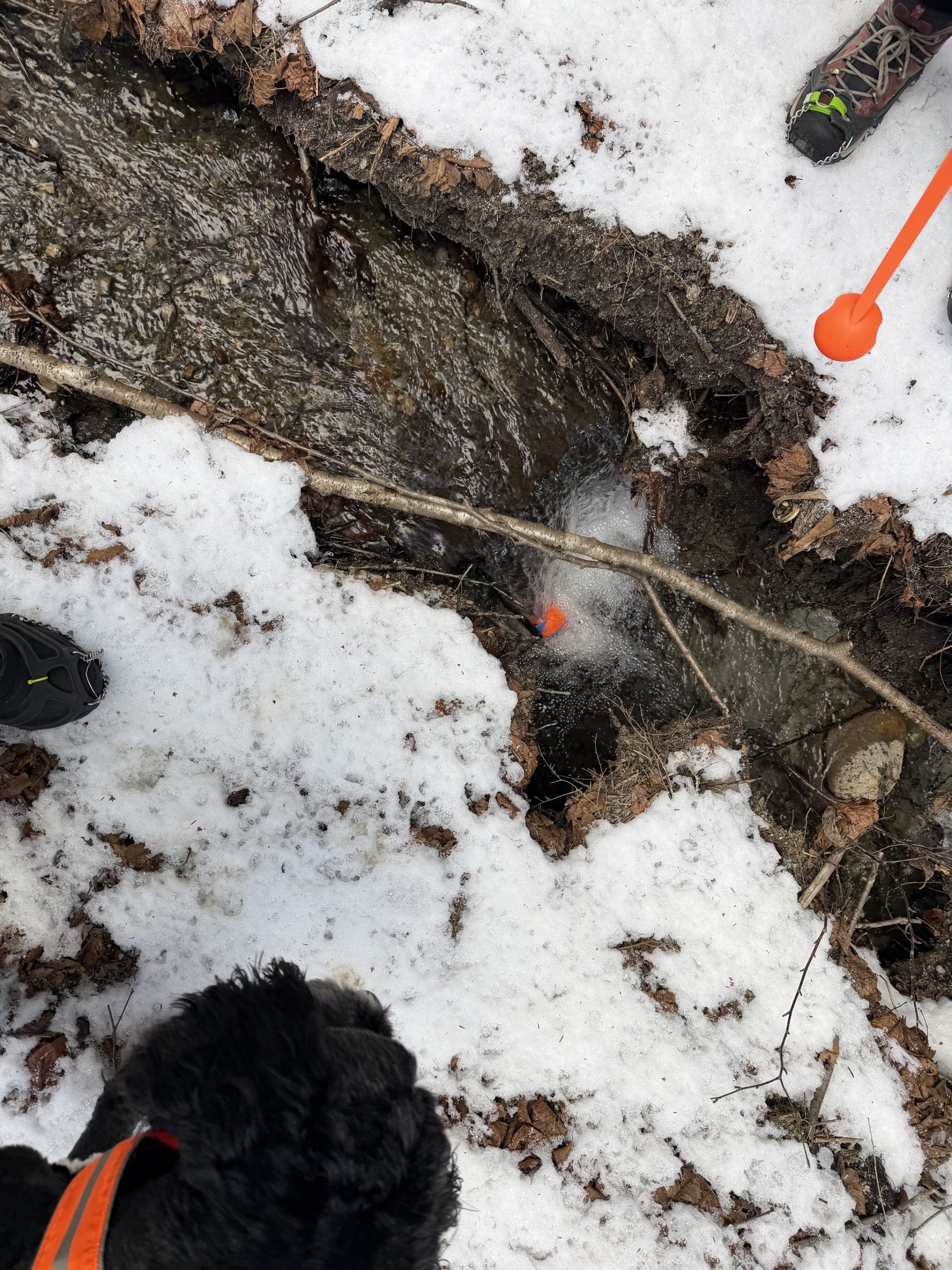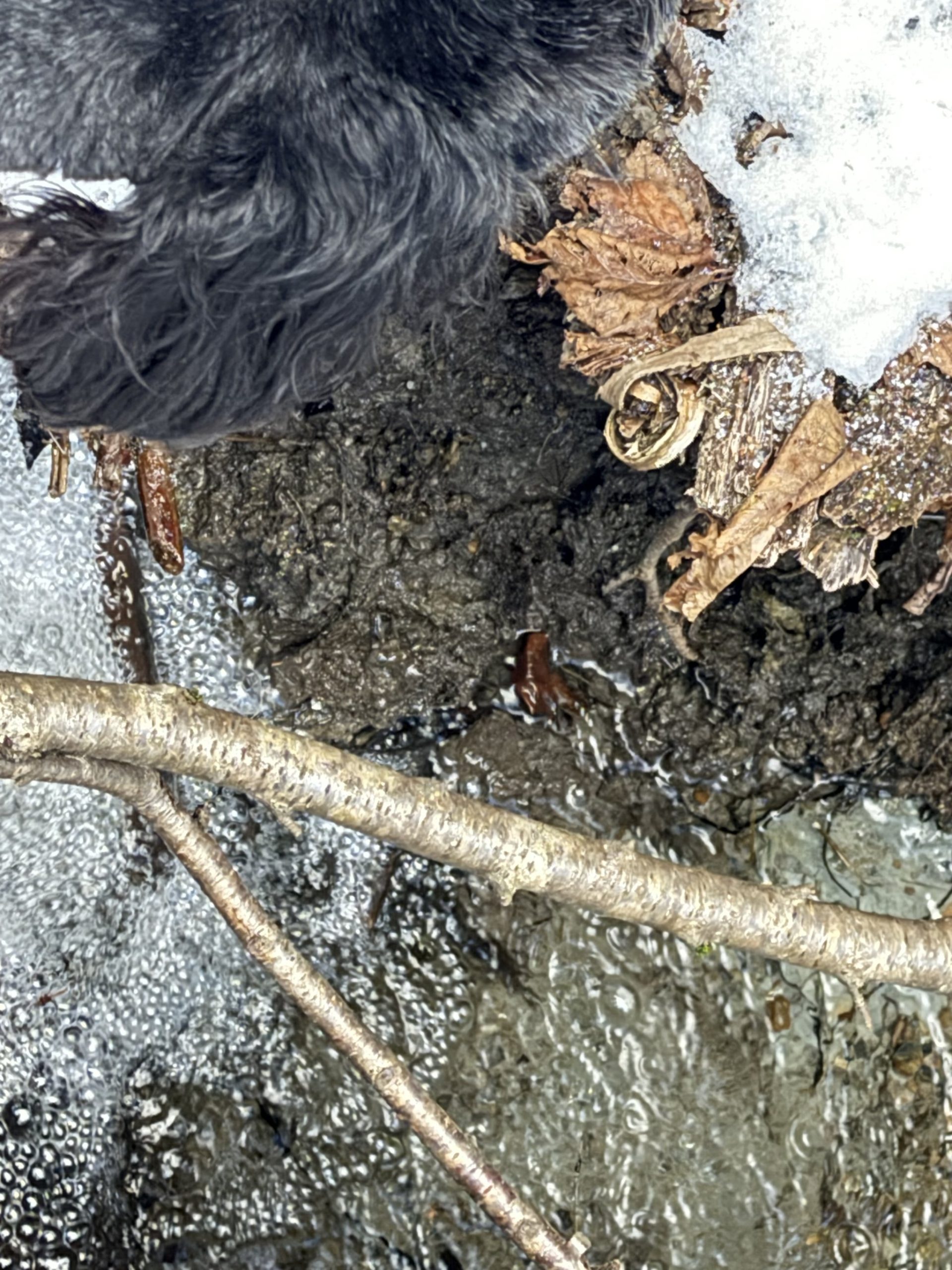 How many snow pictures will I have posted from under this winter? Diana and Nowak got out for a quick walk this morning… Nova has a habit of trying to drop her ball into ditches she particularly like dropping it into water. Fun but also sometimes hard to rescue the ball.