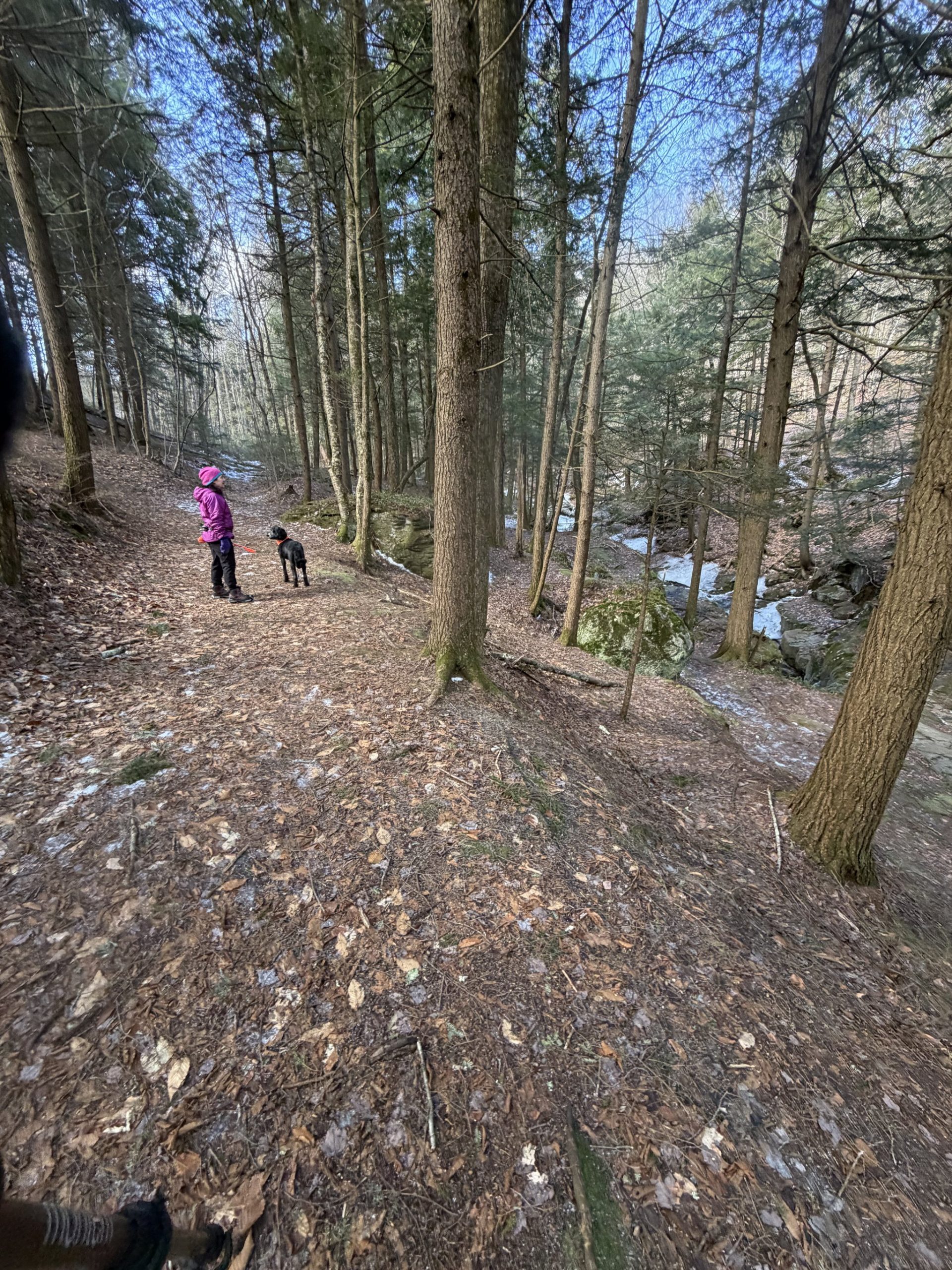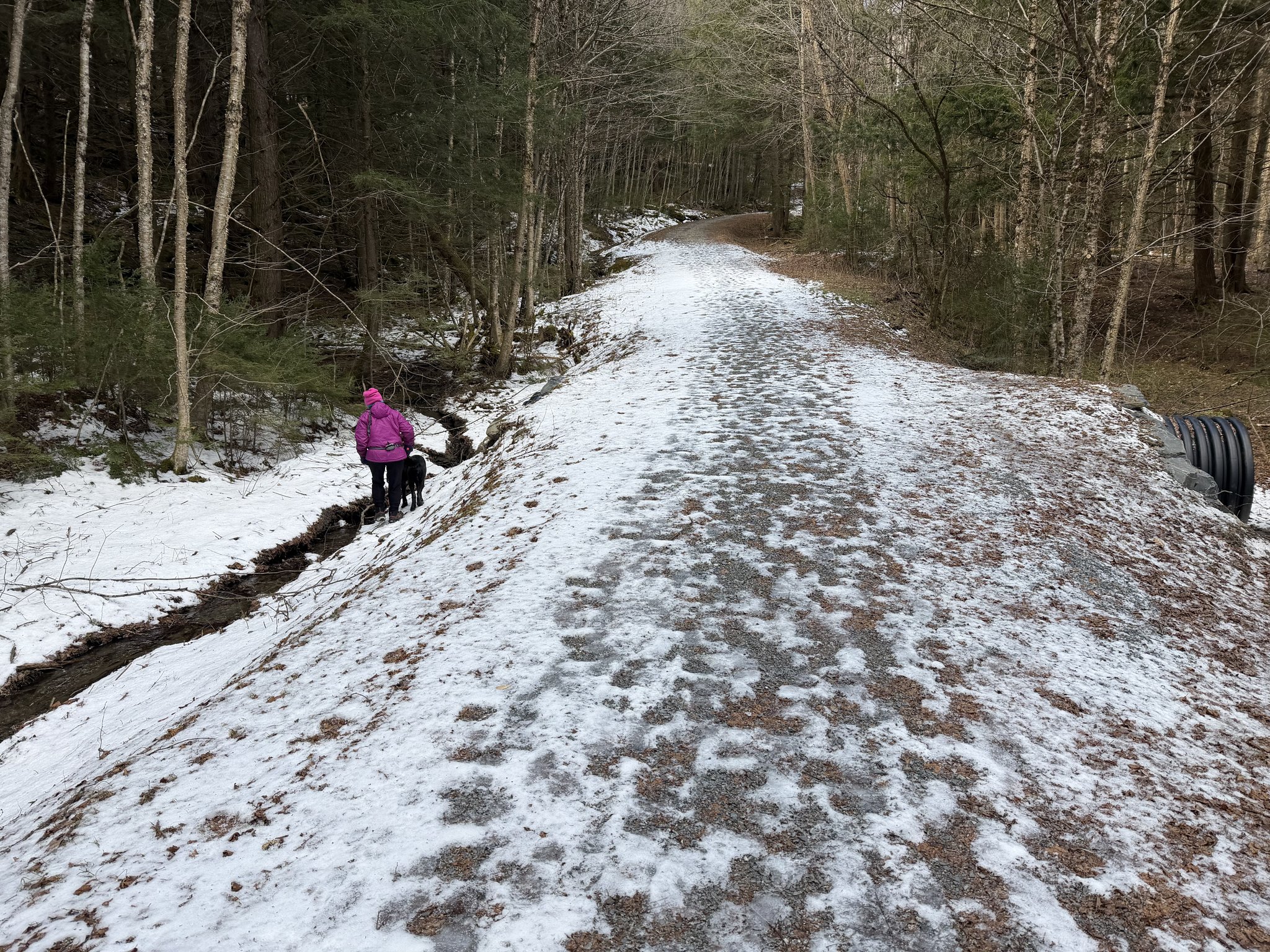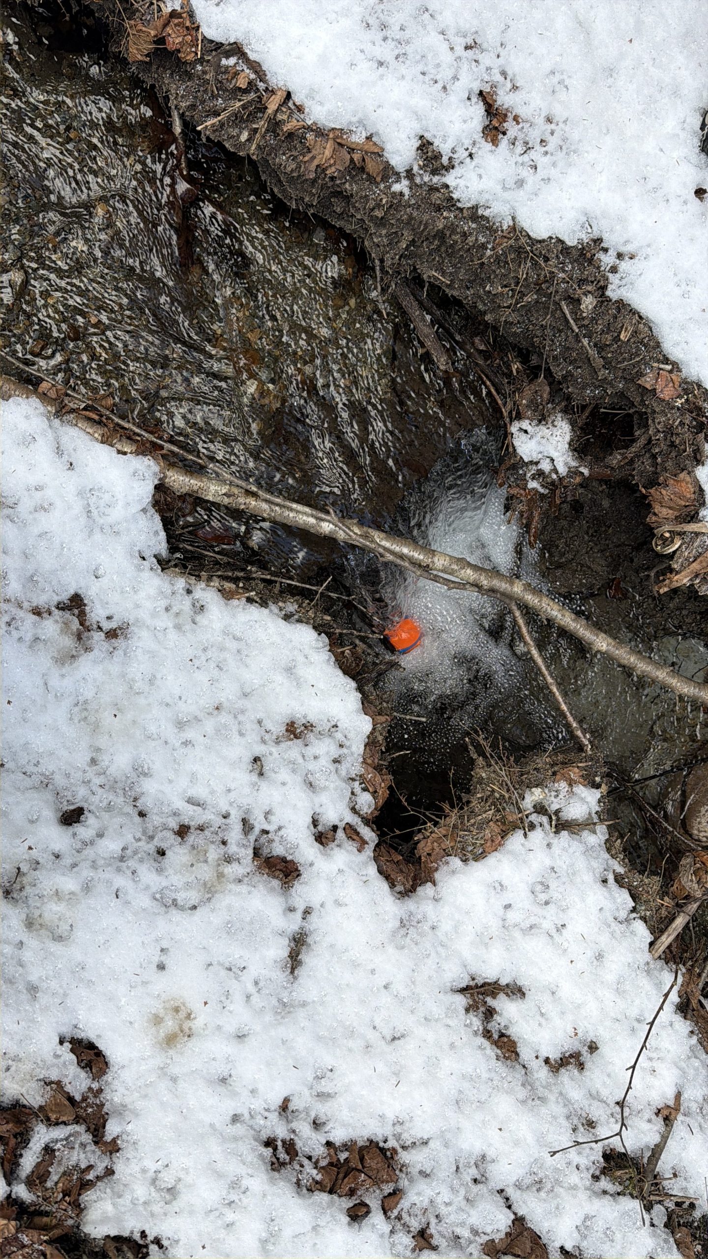 How many snow pictures will I have posted from under this winter? Diana and Nowak got out for a quick walk this morning… Nova has a habit of trying to drop her ball into ditches she particularly like dropping it into water. Fun but also sometimes hard to rescue the ball.