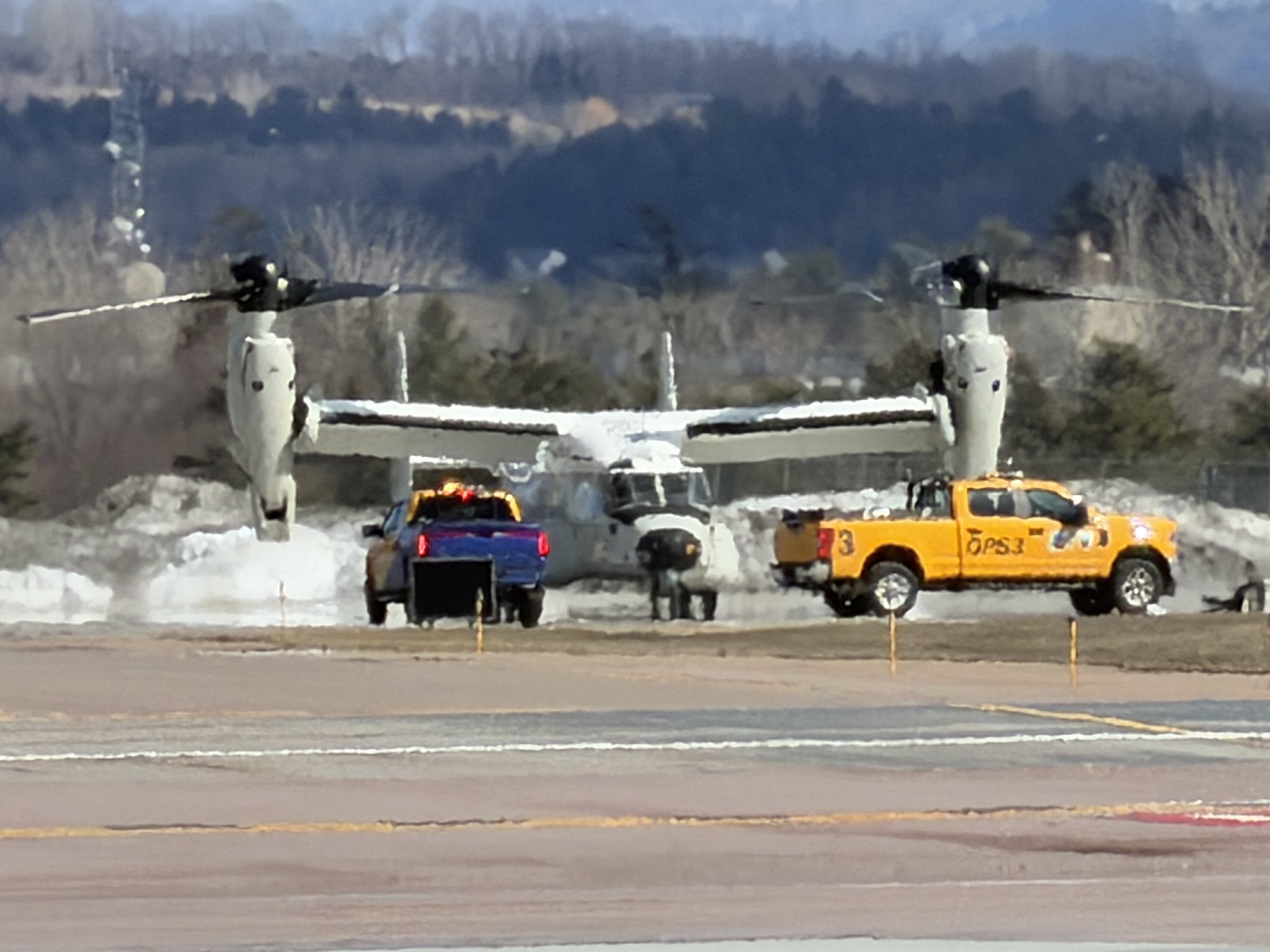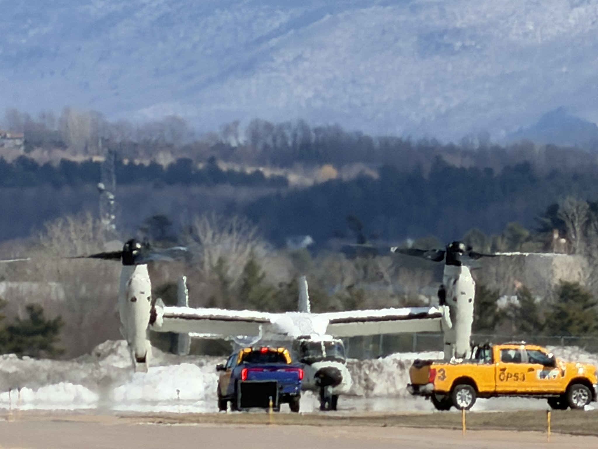 Had an interesting surprise at work today. I was heading over to one of our new buildings and I looked out on the runway and saw an Air Force Osprey vertical takeoff airplane.… This is one of the first mass produced planes that took off vertically by pivoting it propellers of work. It’s notoriously complicated and difficult to maintain, but it was very cool. CSean fly over and land and takeoff.