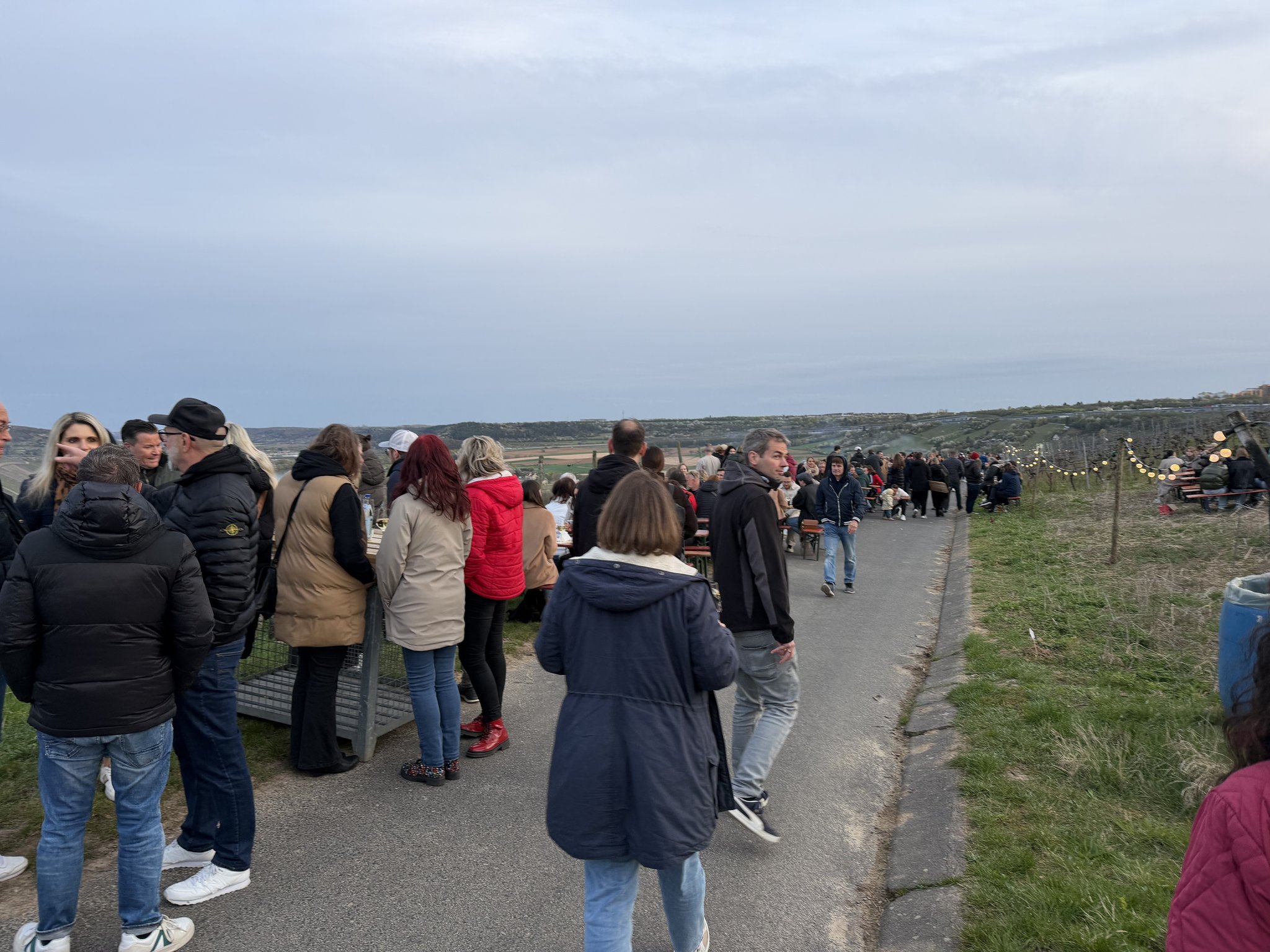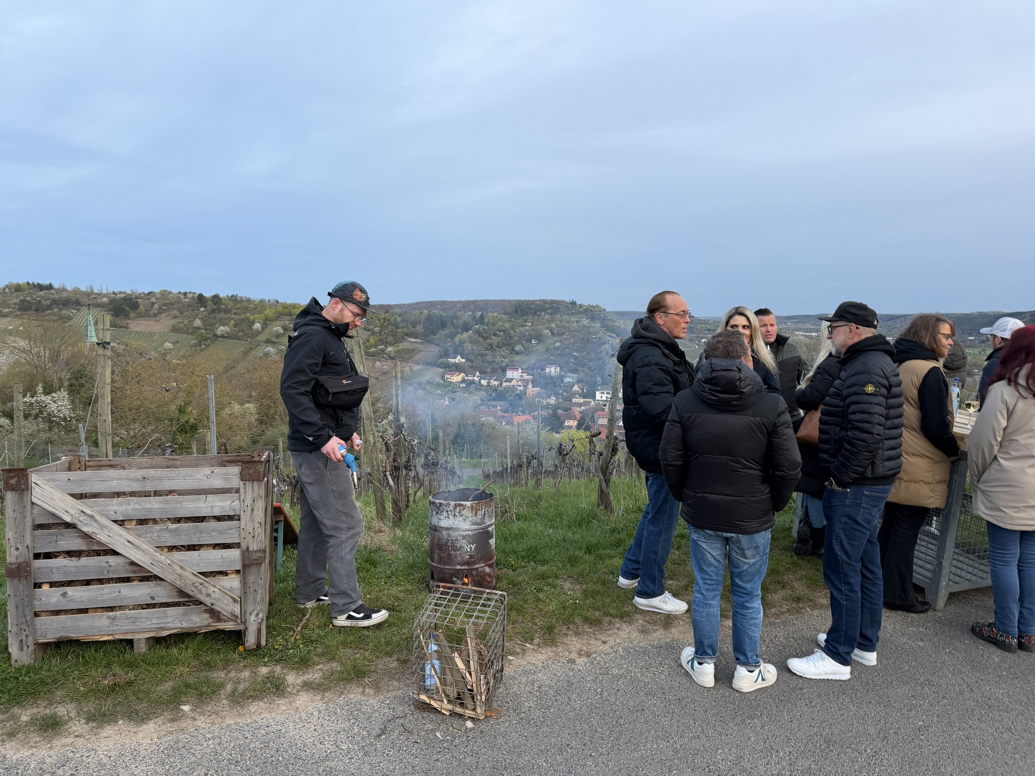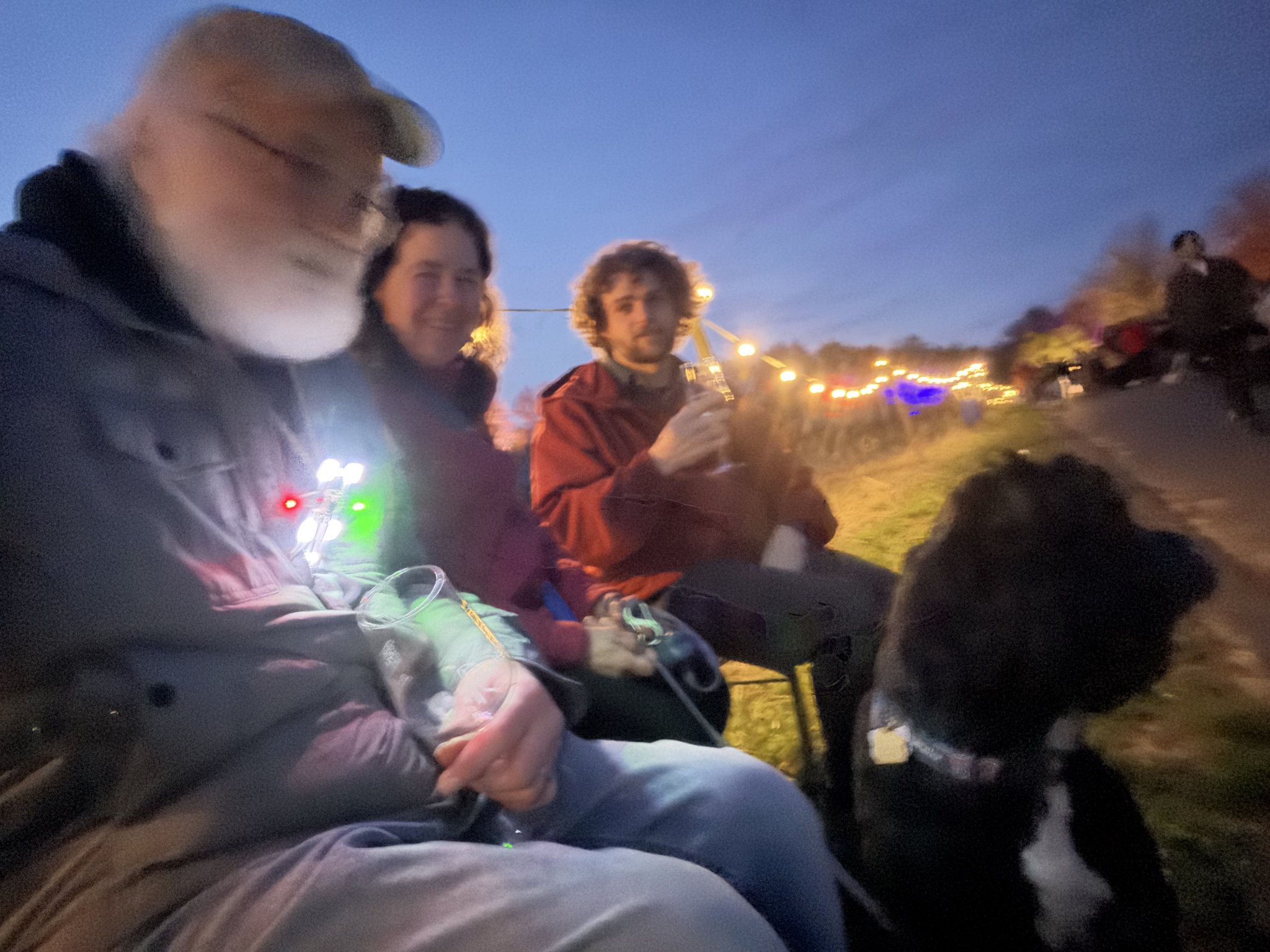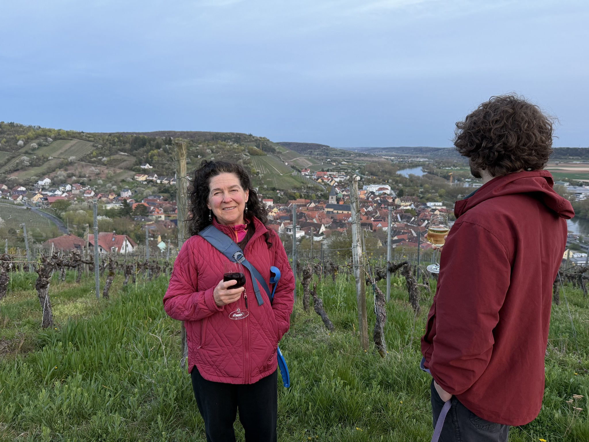 THis evening we hiked over to teh vinyard above Randersaker for the wine festical. .It was quite a scene.. Lots (mabey 100 ? ) of people there drinkign local wine from this year, eating various parts of animals.. and making flamekuchne (kind of a local type of Pizza).. there were fire barrells everywhere that kept us all warm.. then hiked back in the dark.. so very fun !!!