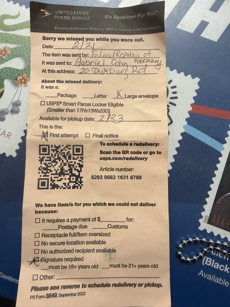 As I drove to the Postoffice to be there when it opend, I got a tesxt message that the package was there !!!!!!!!!!!!!!!!!!