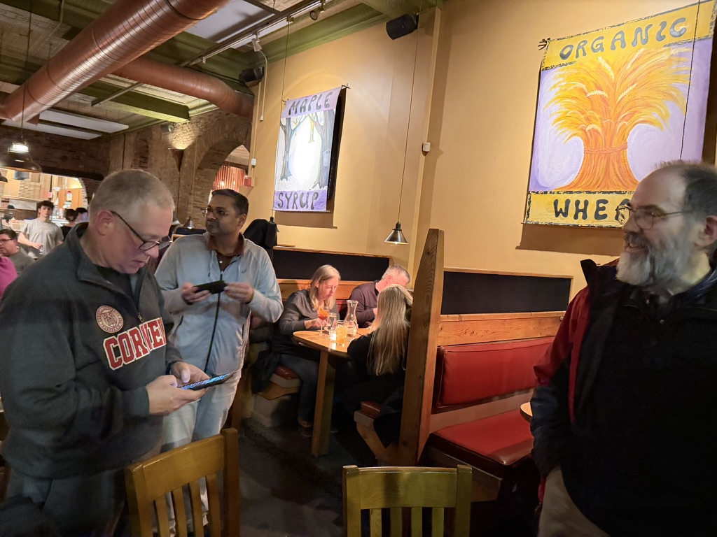 I missed the pizza.. but it did get to see erik and so many of our old friends. David, Zuch, Jeff, Nate, Rob, Dabile Siko.. many others too ! . A bunch of our colleages from East Fishkill and Yorktown (Chandu, Natesan, Kerim) xcme up as well whc8h I know meant a lot to Eric.