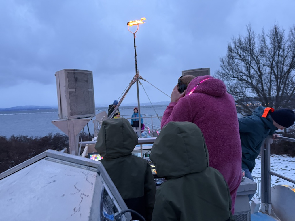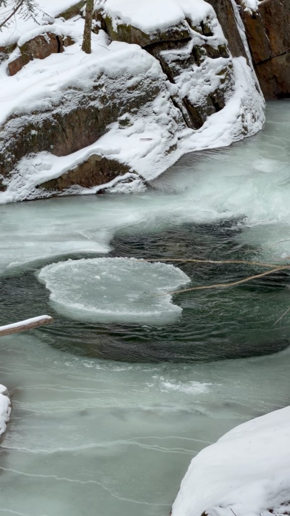 the crazy ice patterns got us thinking about how the ice is formed. We actually captured a revolving ice ‘island’ get captured by the ice