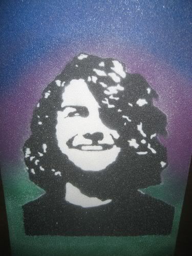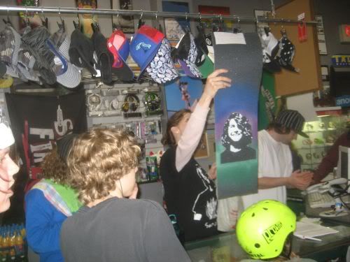 Phil showed up with some grip tape that he’d stenciled using a hand cut stencil of Sam’s face. it looked so cool !