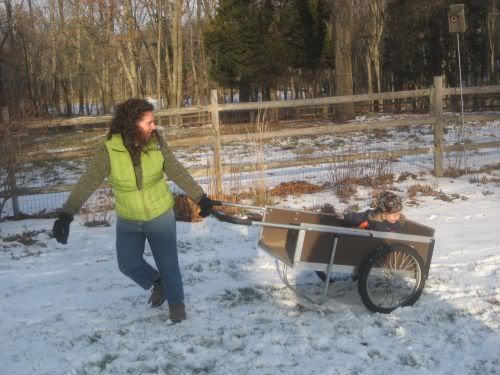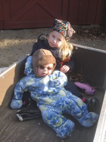 The kids really liked seeing the chickens.. We had fun pulling them around in the garden cart.