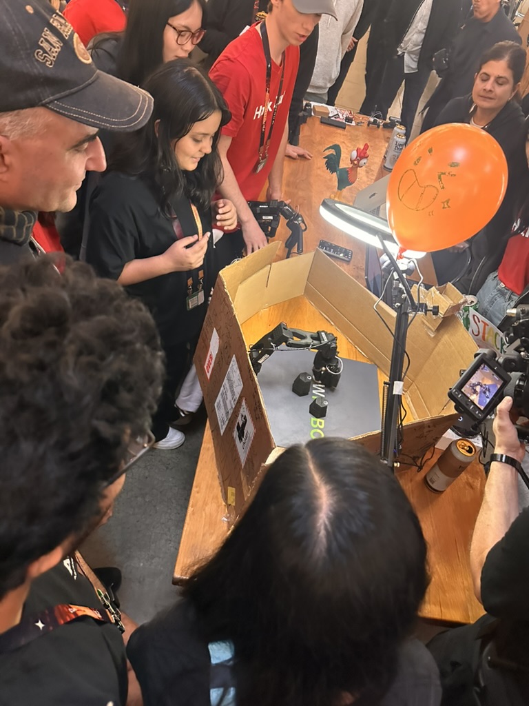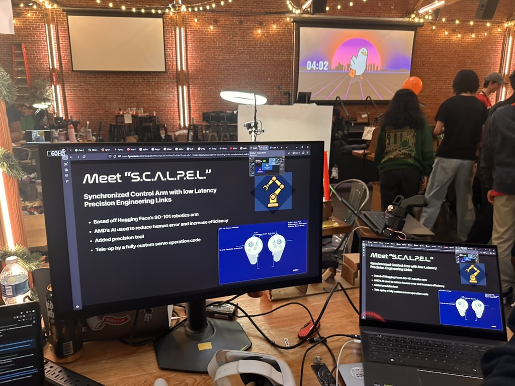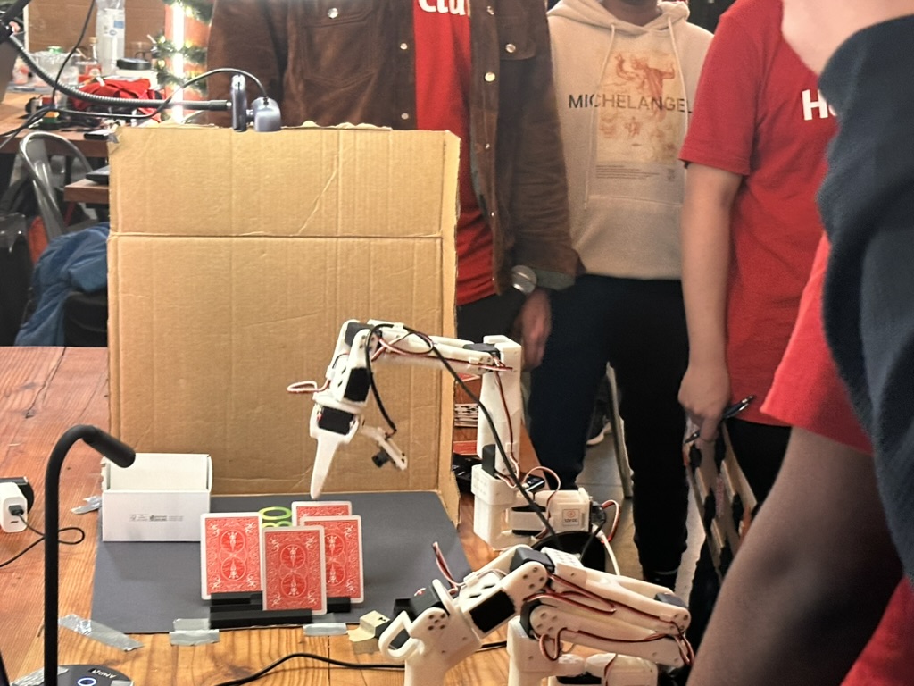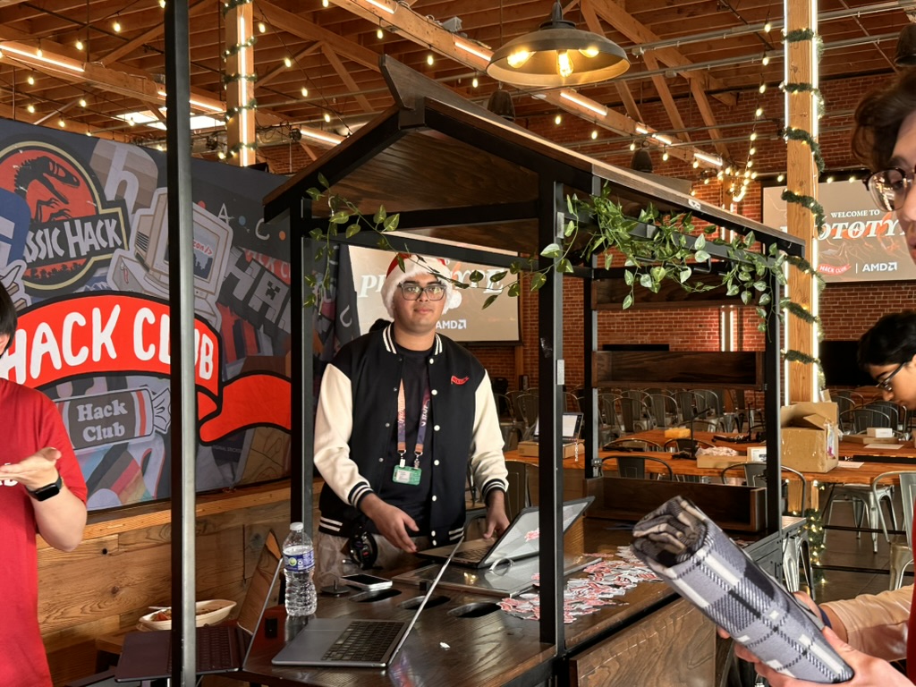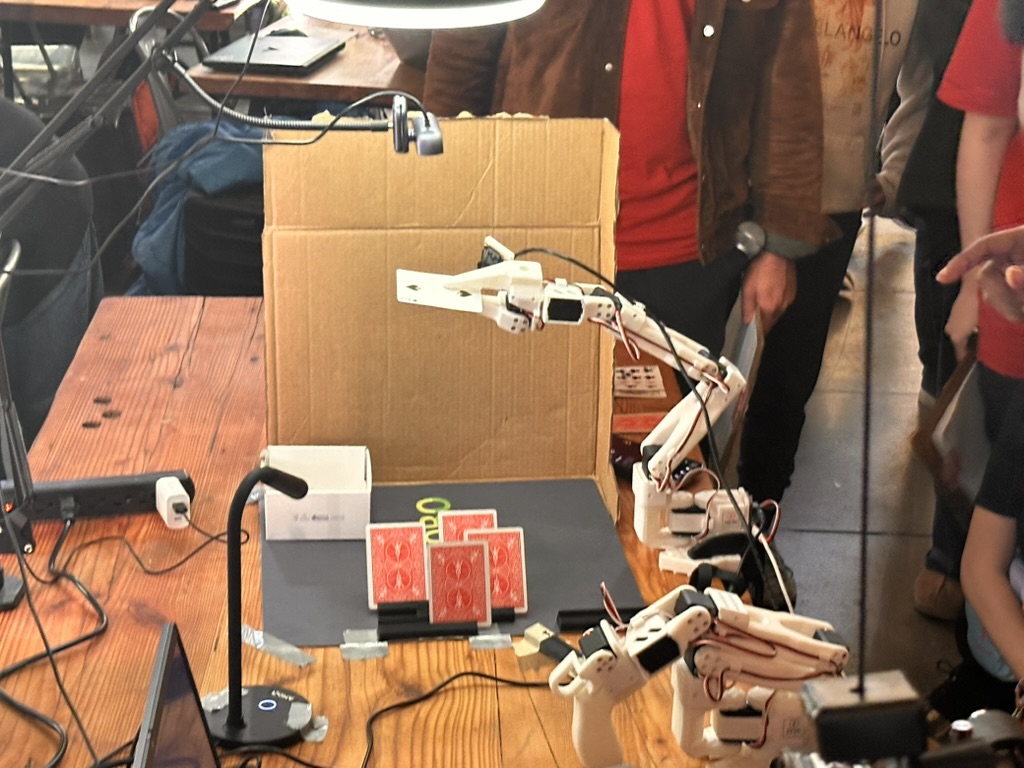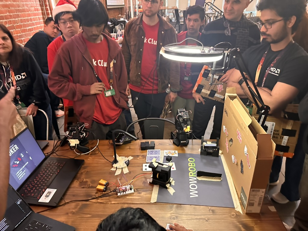 Then came the time for the projects to be judged.. the judging criterion were reviewed again. then a team of judges from AMD and Hackclub began visiting all the teams. Teherewere some amazing projects that all hilighted the DELL AI laptops with AMD Processors and Radeon GPUS as well as a the Open Source LeRobot robotic arm platform.