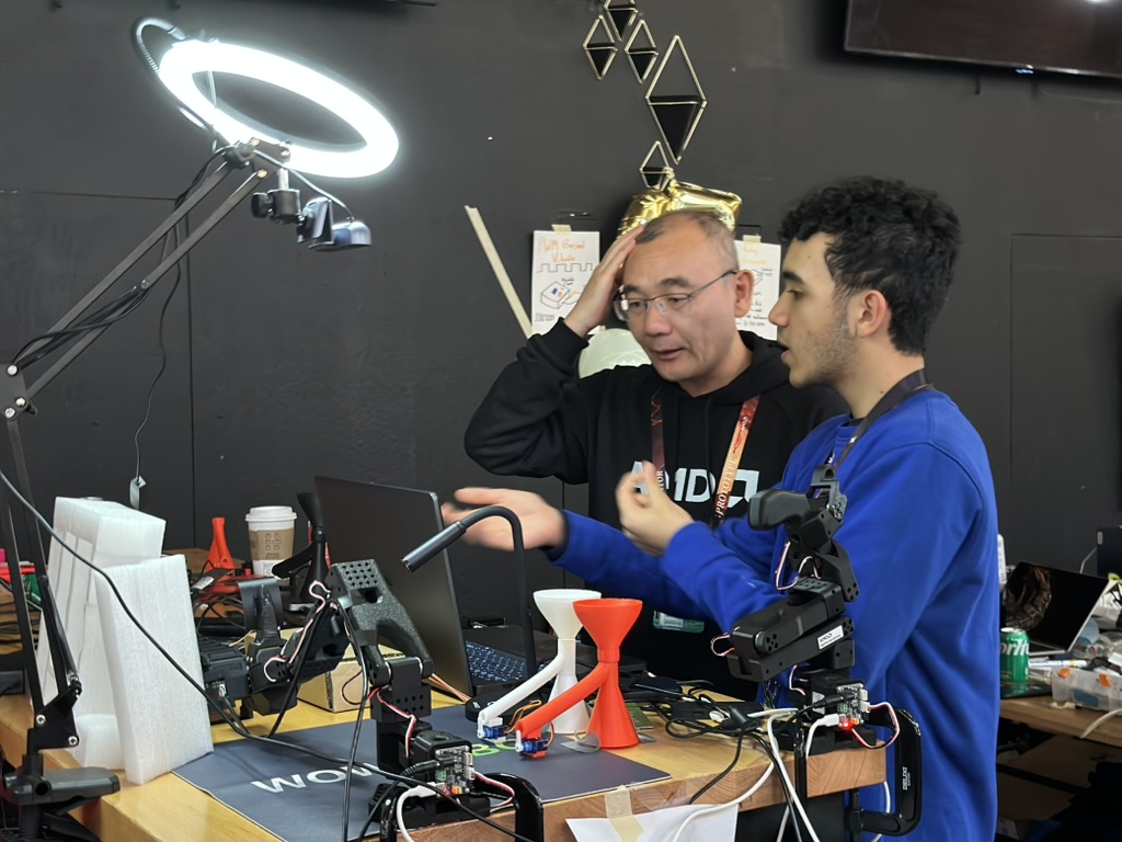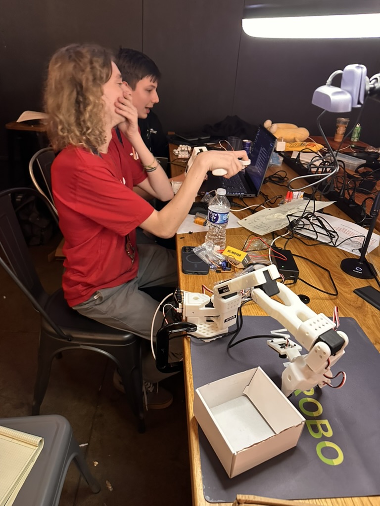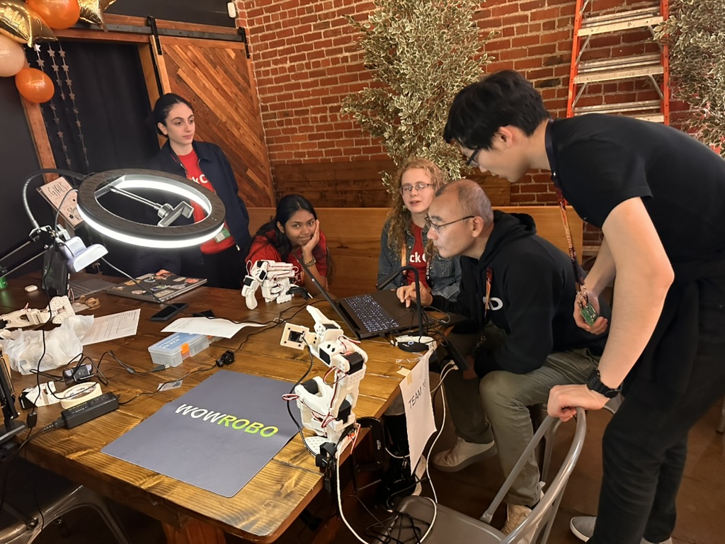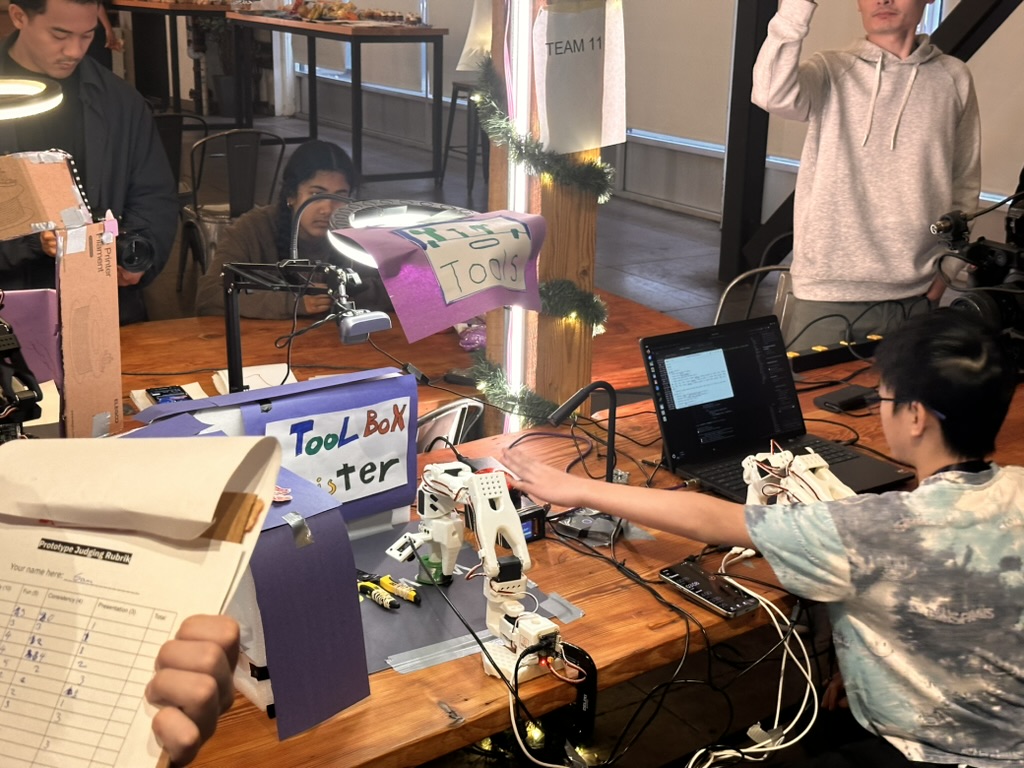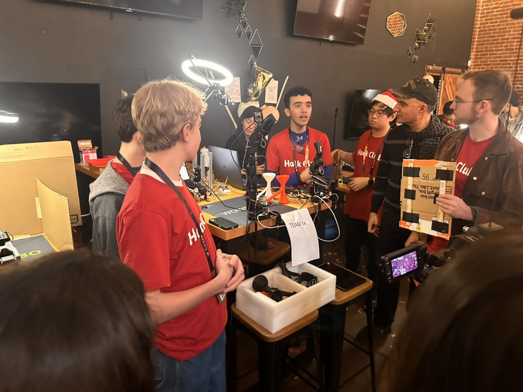 Then came the time for the projects to be judged.. the judging criterion were reviewed again. then a team of judges from AMD and Hackclub began visiting all the teams. Teherewere some amazing projects that all hilighted the DELL AI laptops with AMD Processors and Radeon GPUS as well as a the Open Source LeRobot robotic arm platform.
