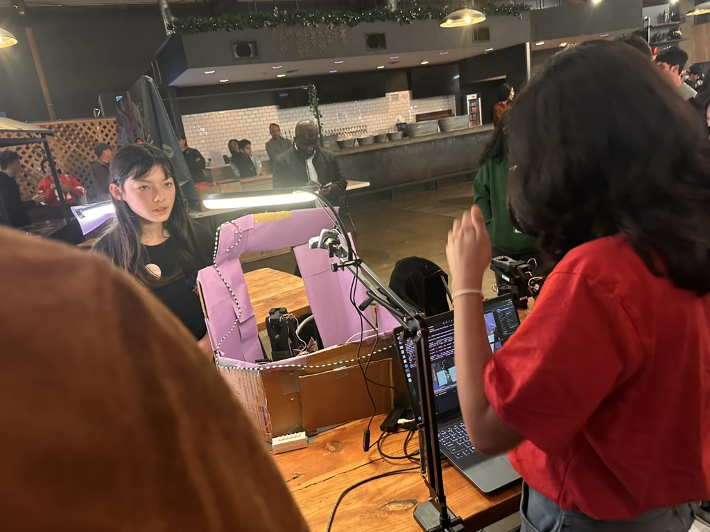 I got in earlier on sunday.. .. the hackers had until 1 ( i think) to finish their project..s .. they were all still workign furiously.. writing code, training models, soldering, painting.. it was amazing to see