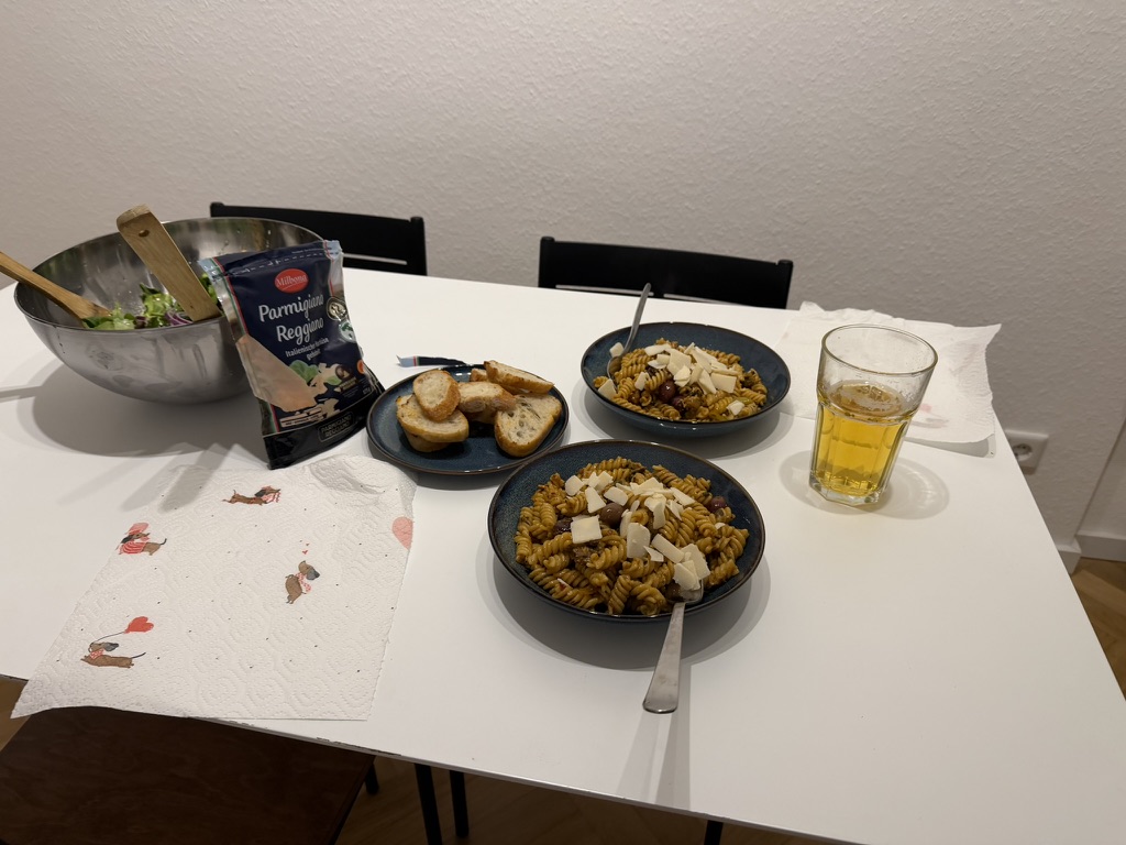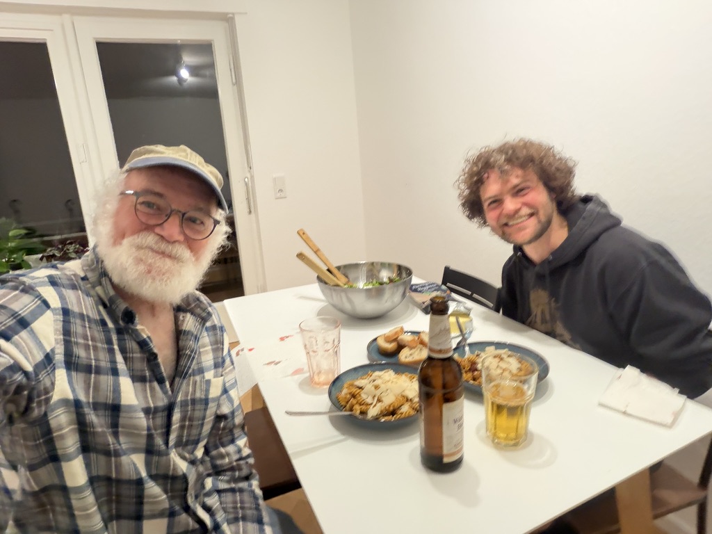 Tonight we decided we’d treat ourselves to the first Doner.. Doner shops are all over Germany.. they specialize in Drehspieß. .. (literally turning food) .. or rotisserie.. it’s very much like Gyros .. They also have falafel and other middleeastern goodies. We found one with good reviews and walked down there