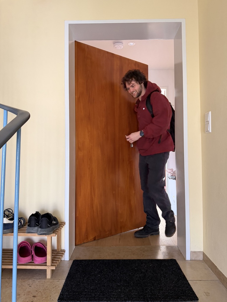 Today was a big day for Gabe .. He went in to work for the first time to talk to his new PI Prof Martin Eigler. It was fun walking him to the bus stop