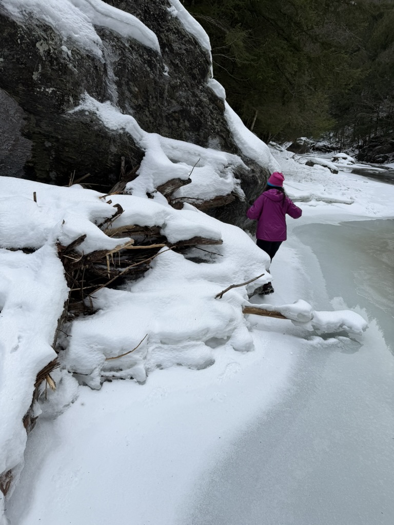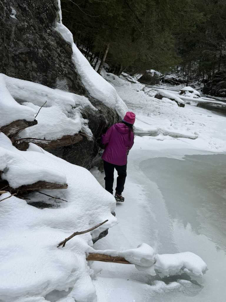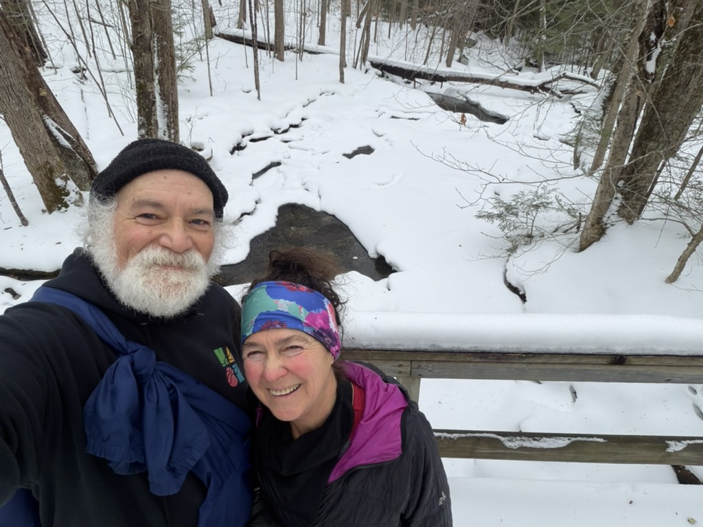 Diane and I woke up early .. again expecting rain for the weekend, so determined to get out in the snow. We took another very fast hike up to duxbury notch.. Starting with a really nice sunrise
