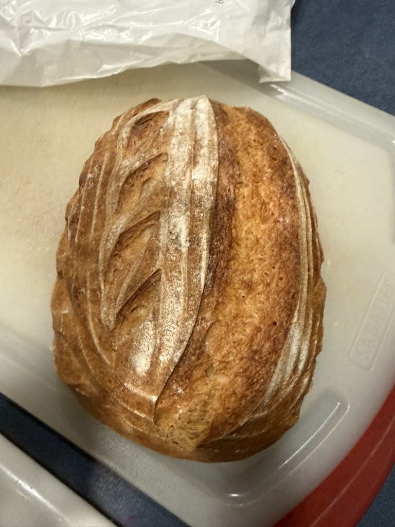 Great catching up with them. Alice is workign at baker while she’s home from college. she made us this beutiful and very tasty loaf of bread