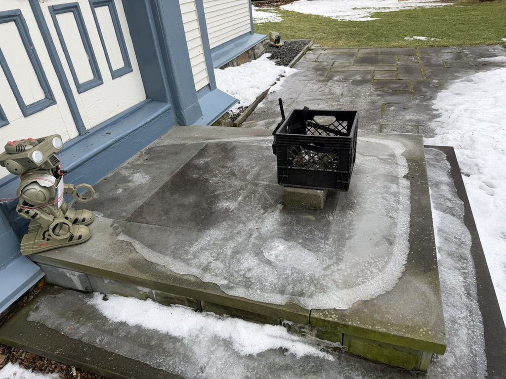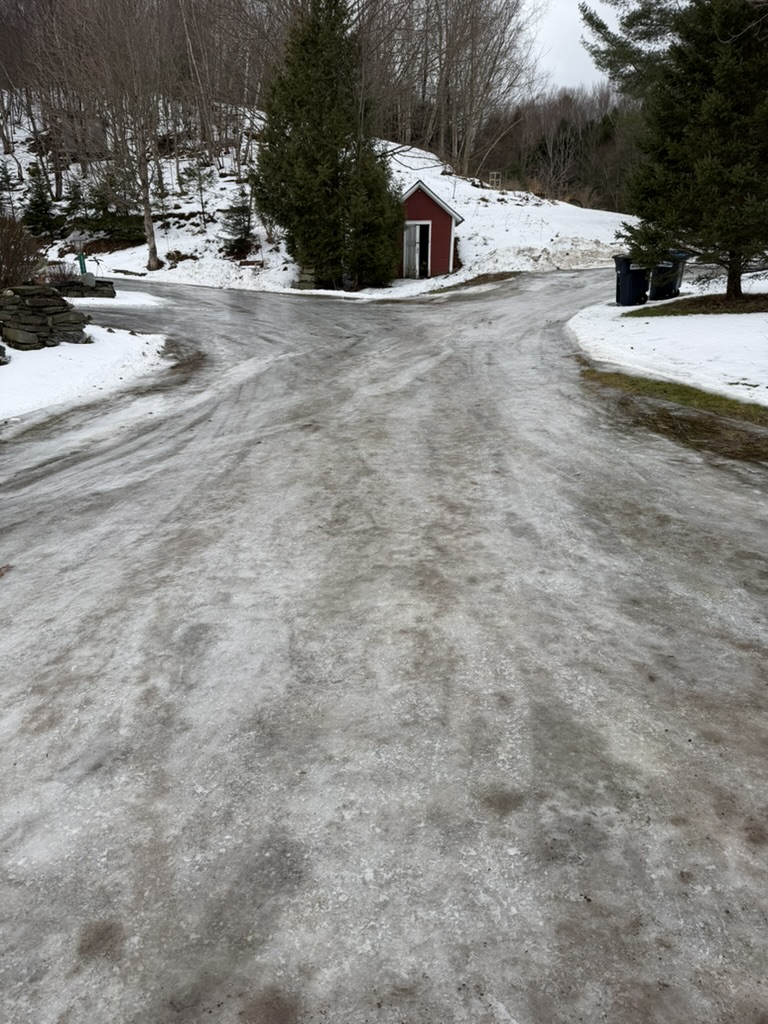While we didnt get the huge rain dump we were expecting, we did get enough rain to put a glaze on everything. It was pretty funny because qwe were trying to buy Gabe soem tires out in Portland.. and they were trying to convince us that we didnt need studded snows..I was tempted to send these pics to teh tire folks (we actually opted for all seasons to get him out here.. then we’ll get the studded winters for his car).. !