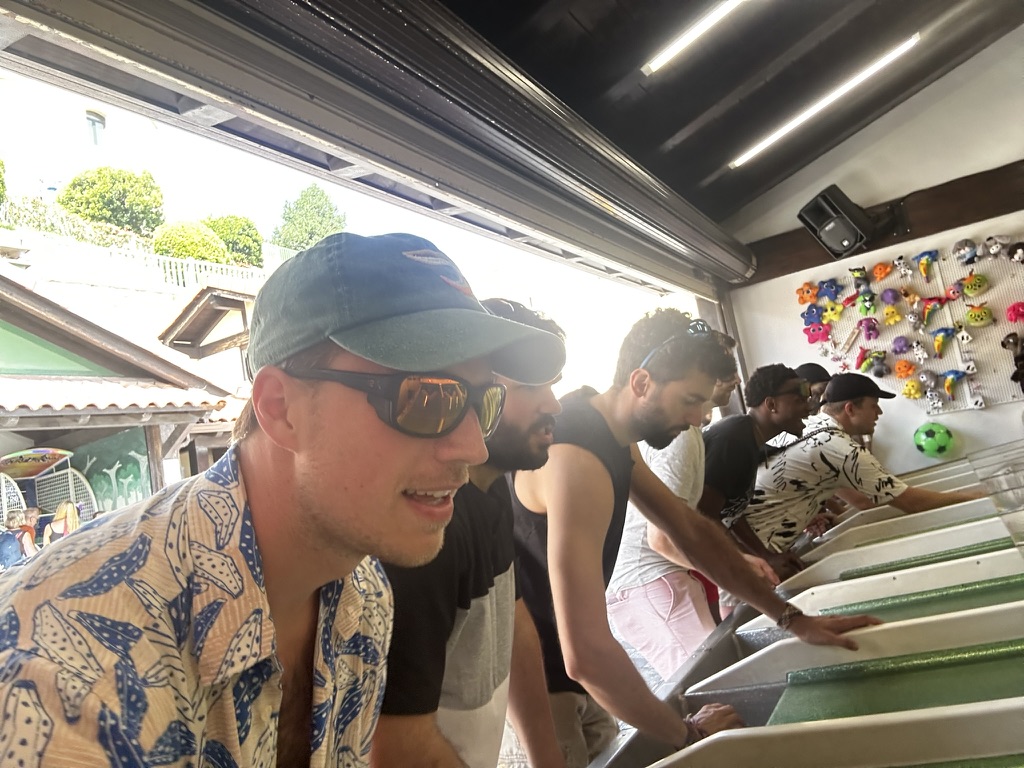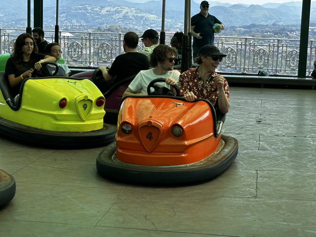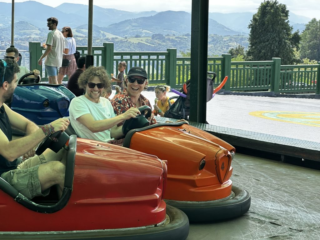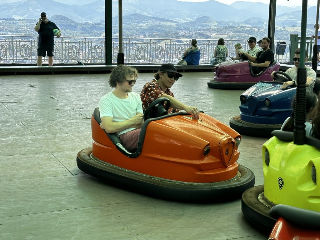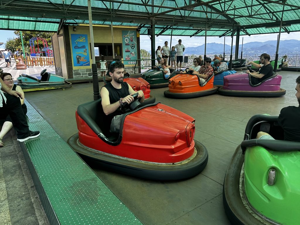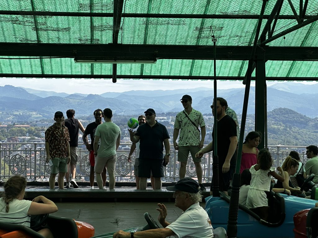Today was the groom and brides party.. Al us guys whnet out for a day of crazy fun. First stop was a visit to the amusement park on Monte Igueldo.. Its a super old school pay as you go place with wooden roller coaaster and ol tiem bumper cars.. All with an amazing view of san sebastian !