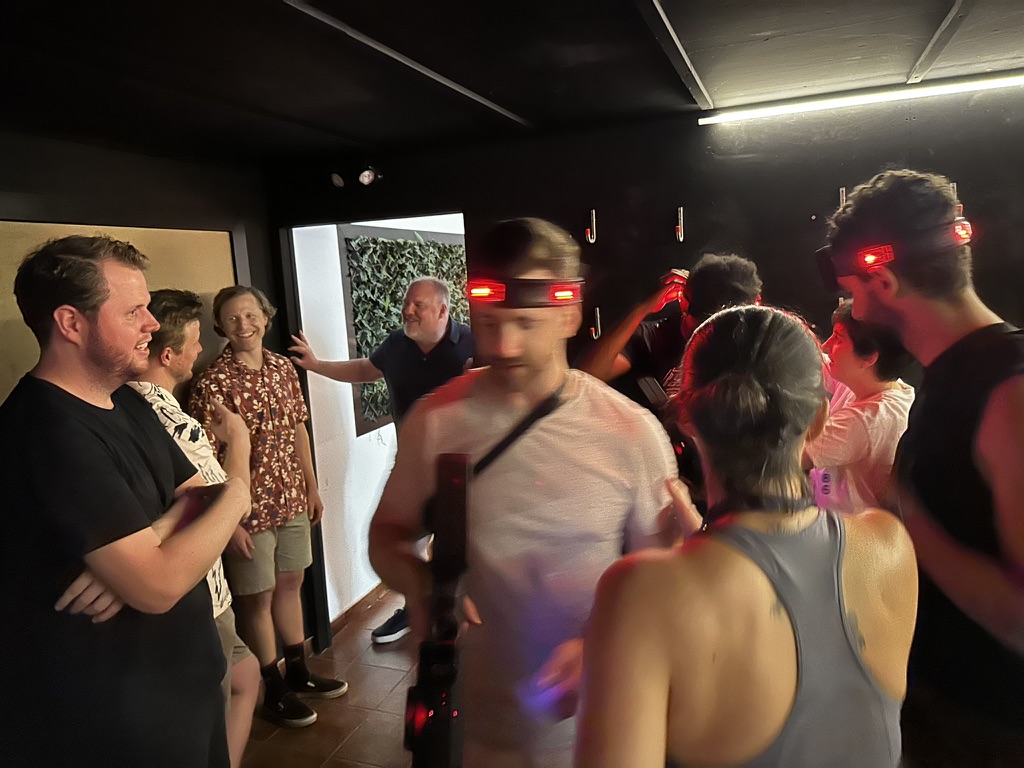 From there we grabbed a bus down to the laser tag place… .. It was a blood bath.. Gabe poned us all !