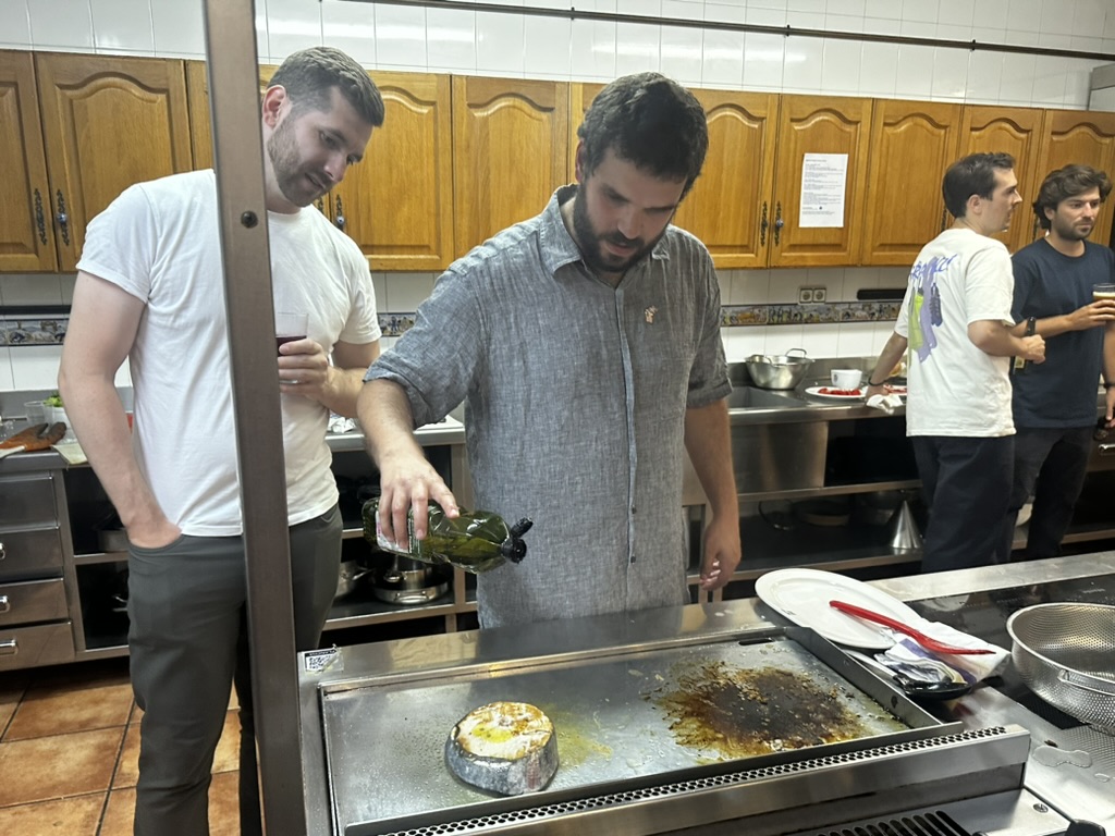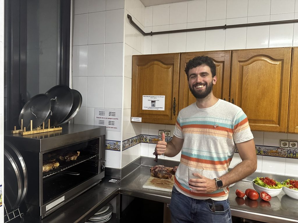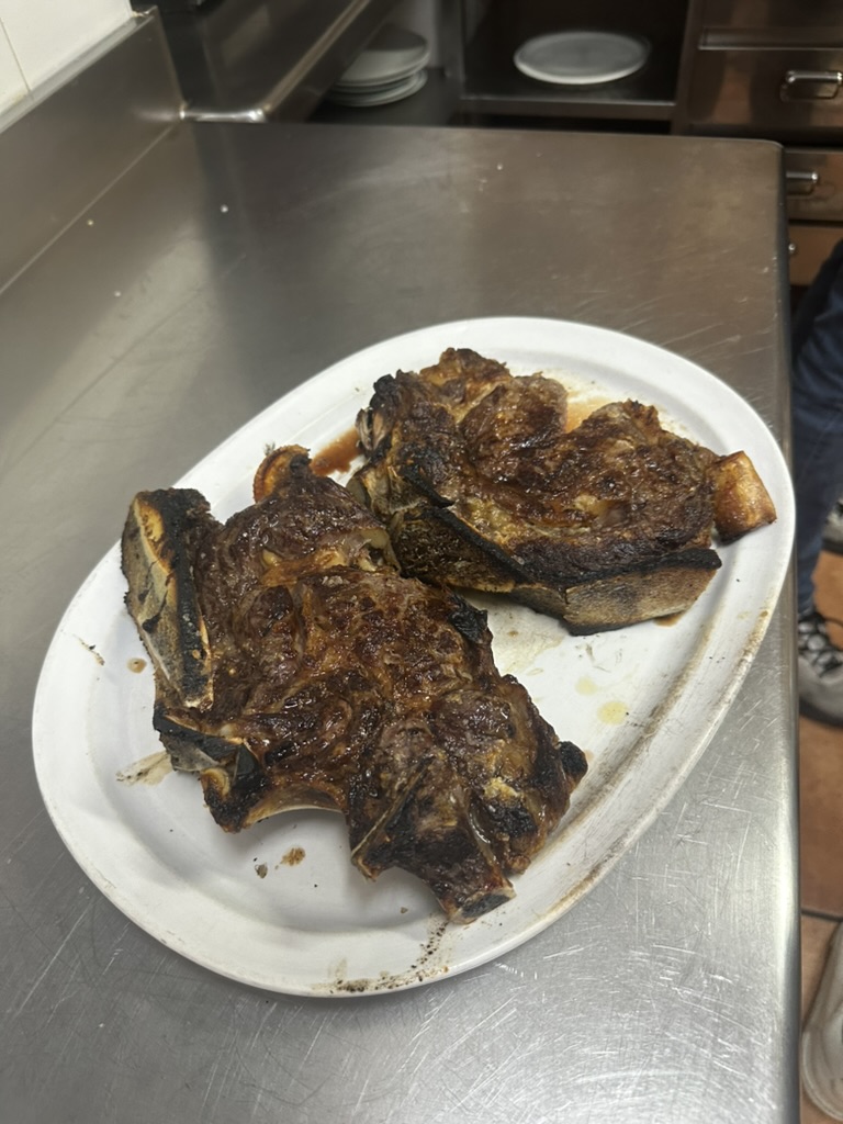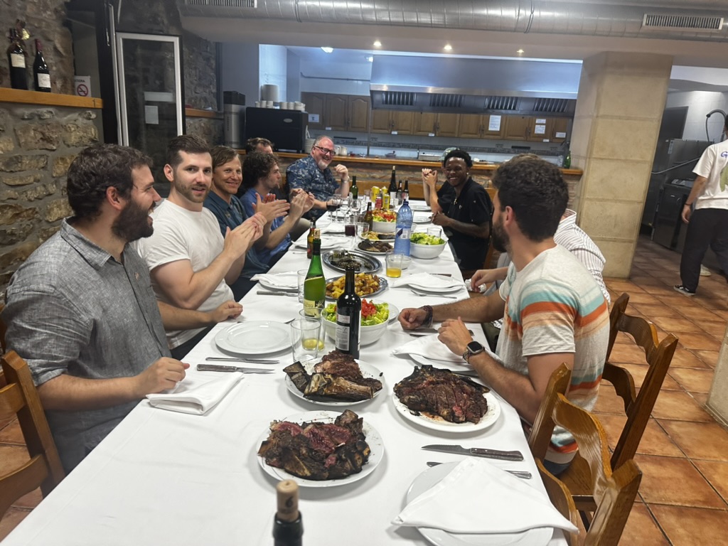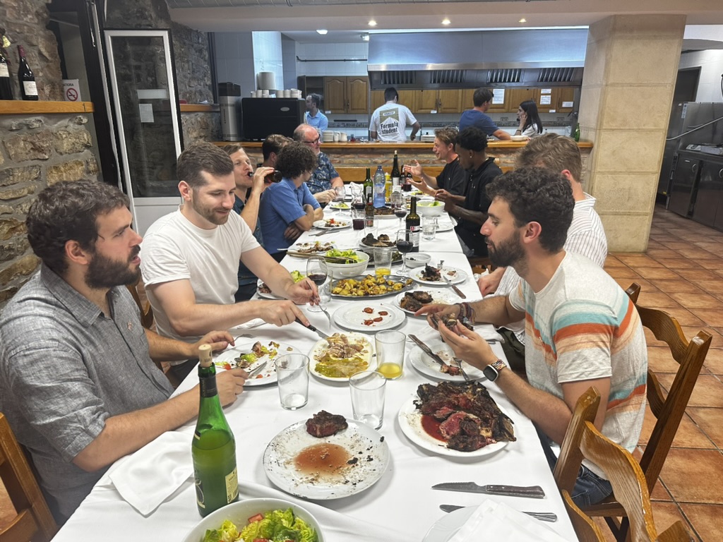 After laser tag.. the guys went to one of the gatronomy clubs to cook dinner. .. We were in the engineers club.. it was basically a big commercial kitchen and a bunch of tables.. David and Edo led the cooking .. we helped out where we could.. and ate things as they came out.. pinchos, drinks, steaks, salad, fish for me.