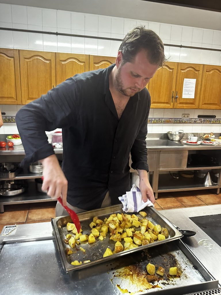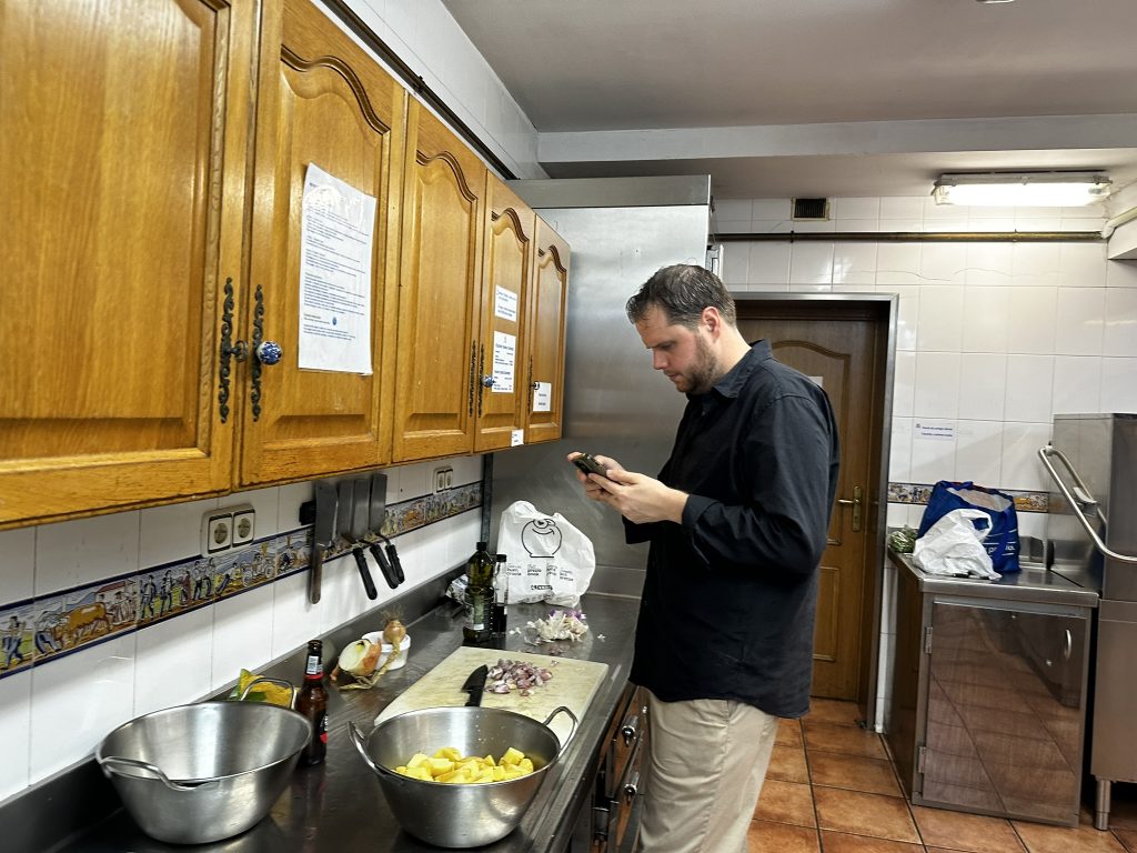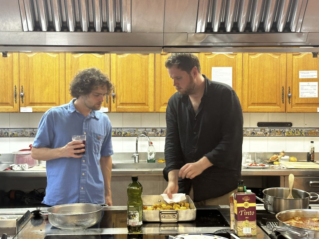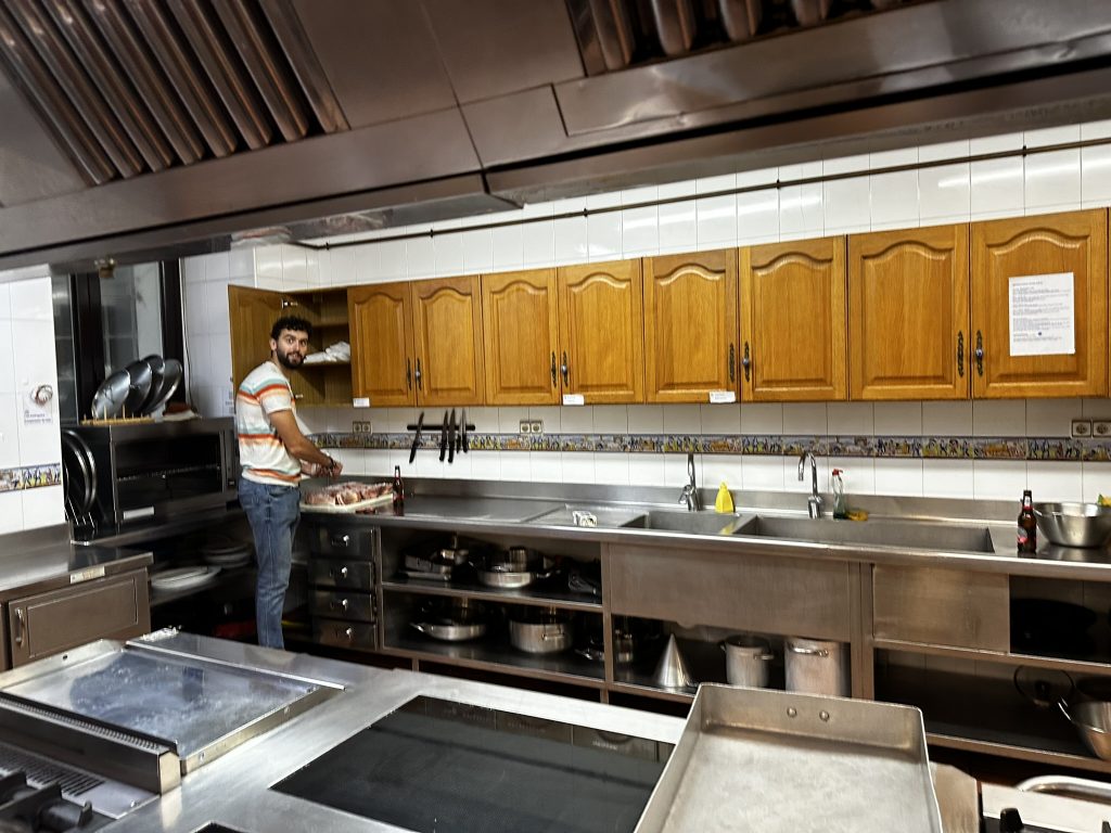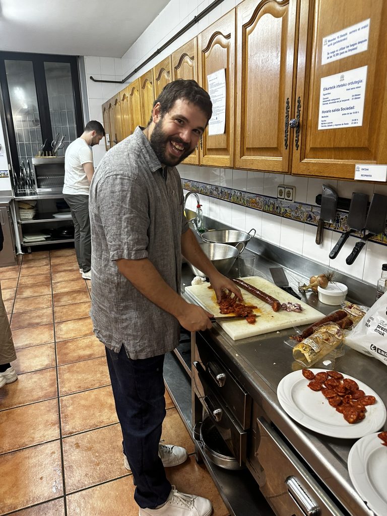 After laser tag.. the guys went to one of the gatronomy clubs to cook dinner. .. We were in the engineers club.. it was basically a big commercial kitchen and a bunch of tables.. David and Edo led the cooking .. we helped out where we could.. and ate things as they came out.. pinchos, drinks, steaks, salad, fish for me.