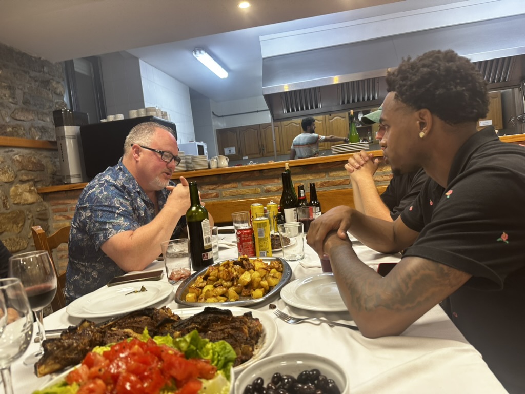 (appologies to Tolkien for that title.. too good not to use 🙂 I was able to upgrade a saw using some points. I had so travel was easy. We met up with Gabe and Frankfurt… Which is a huge airport that I spent so much time in over the years.… We went to a lounge got some breakfast and then got on our plane to Bilbao. That was a short two hour flight and we got to fly over landing